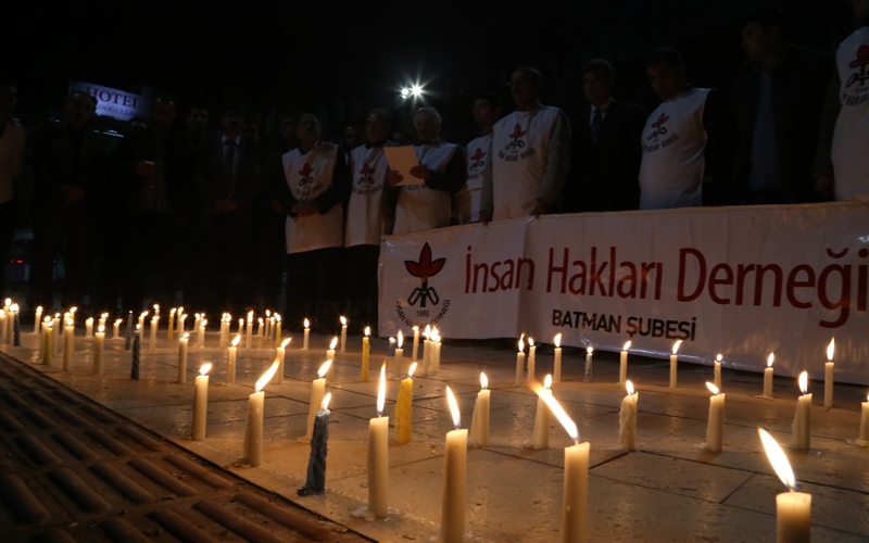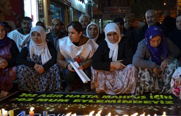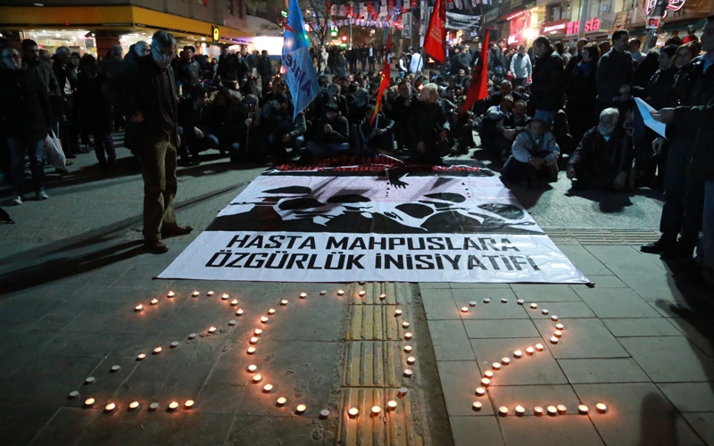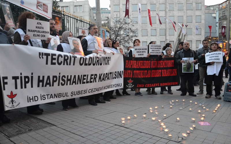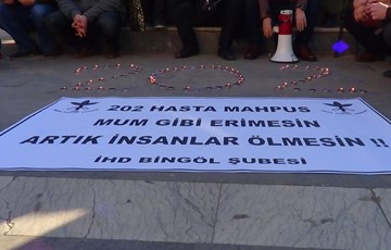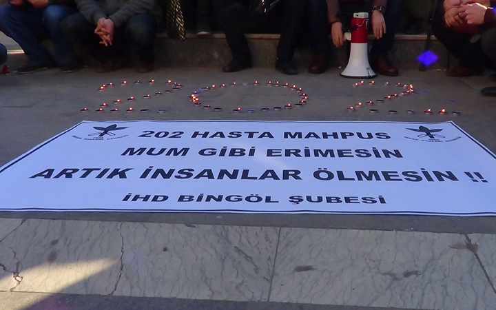 Cezaevlerinde bulunan 202'si ağır 620 ağır hasta mahpusun durumuna dikkat çekmek amacıyla İHD'nin Diyarbakır, İstanbul, İzmir, Ankara, Bingöl, Siirt, Batman ve Elazığ şubeleri tarafından mumlu oturma eylemleri düzenledi. "Hasta mahpuslar mum gibi sönmesin" çağrısında bulunan İHD'liler, hasta mahpusların serbest bırakılmasını talebiyle imza kampanyası başlattıklarını duyurdu.