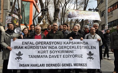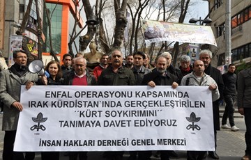 İHD Genel Merkez, Halepçe katliamında yaşamını yitirenleri anmak amacıyla Yüksel Caddesi İnsan Hakları Anıtı önünde basın açıklaması yaptı. "Enfal Operasyonu kapsamında Irak Kürdistanı'nda gerçekleştirilen 'Kürt Soykırımı'nı tanımaya davet ediyoruz" pankartının açıldığı açıklamada katliamda yaşamını yitirenler için saygı duruşunda bulunuldu. Saygı duruşunun ardından basın açıklamasını yapan İHD Genel Başkanı Öztürk Türkdoğan, 16 Mart 1988 yılında Saddam Hüseyin rejiminin "Irak Kürdistanı"nda "Enfal Operasyonu" kapsamında başta Halepçe olmak üzere Kürt şehirlerinde soykırım gerçekleştirdiğini hatırlatarak, 3 gün süren hava saldırılarında Halepçe ve civarının kimyasal silahlarla bombalanması sonucu 12 bin kişinin yaşamını yitirdiğini söyledi.