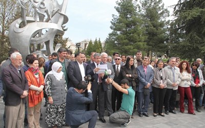 Elçi, son olarak BM ve diğer uluslararası kurumları da baskı ve zulme karşı direnerek uluslararası hukuka uygun şekilde, self determinasyon hakkı çerçevesinde geleceğini belirleyen Rojava halkının meşru-demokratik yönetimini tanımaya, işkence ve katliamlarla karşı karşıya bulunan sivil halkı korumaya ve kendi belgelerinden kaynaklanan sorumluluklarını yerine getirmeye çağırdıklarını dile getirdi. Yapılan açıklama "Bijî berxwadana Rojava" sloganı ve alkışlar ile son buldu.