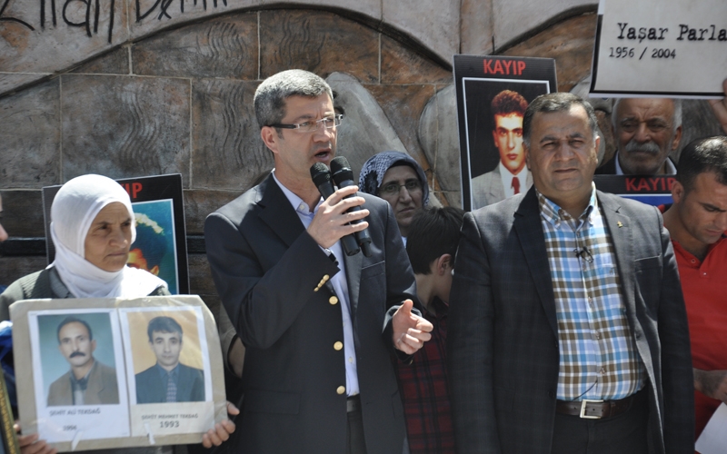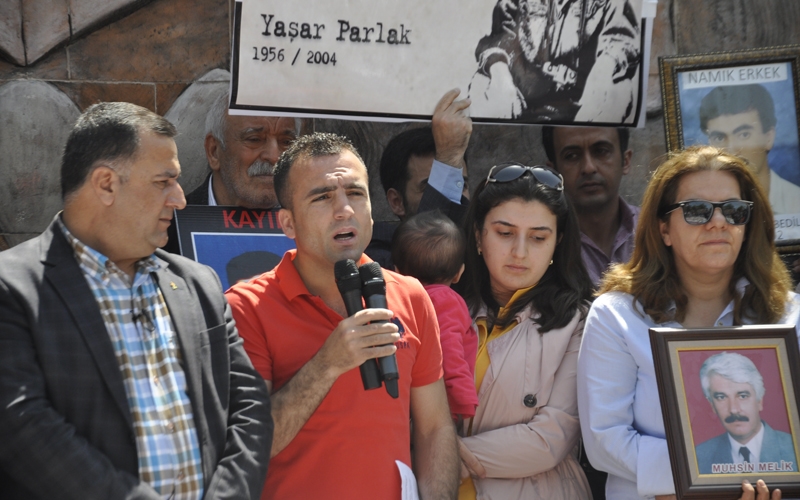 Bilici’nin ardından konuşan İHD Diyarbakır Şubesi eski Başkanı Muharrem Erbey de yaptığı konuşmada, Kürt halkı üzerindeki baskılara dikkat çekti. Erbey "Her türlü tutuklama ve baskılar karşısında mücadele çıtamızı gün geçtikçe yükselteceğiz. Hiç kimse kayıp ailelerinin mücadelesini yalnızlaştıramaz" diye konuştu.