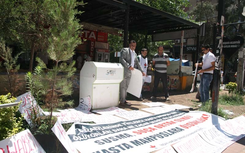 Cezaevlerinde 202’si ağır 620 hasta tutuklunun serbest bırakılması ve tedavileri önündeki engellerin kaldırılması talebiyle bir süre önce İHD Diyarbakır Şubesi tarafından başlatılan imza kampanyası, bu güne Ofis semtinde bulunan Sanat sokağında açılan imza standıyla devam etti. Üzerinde “Susma, suça ortak olma. Hasta mahpuslara özgürlük” ve cezaevlerinde yaşamını yitiren tutukluların isimlerin yer aldığı pankart ve dövizlerin açıldığı imza standında, İHD yönetici ve üyeleri de hazır bulundu. İmza standının açıldığı ilk dakikalardan itibaren yurttaşlar tarafından yoğun ilgi gösterdiği görüldü.