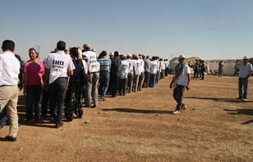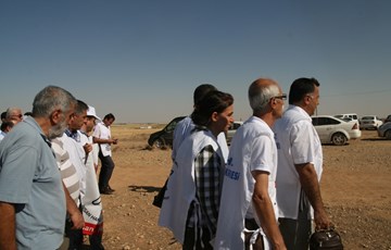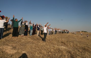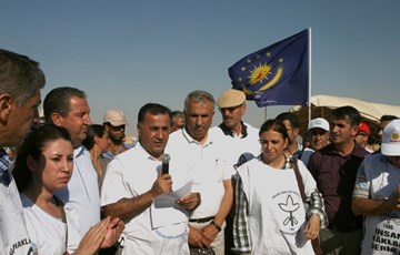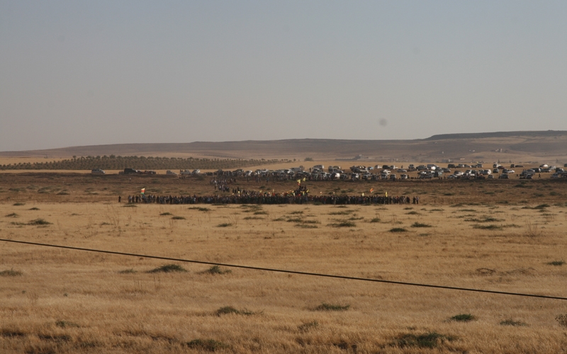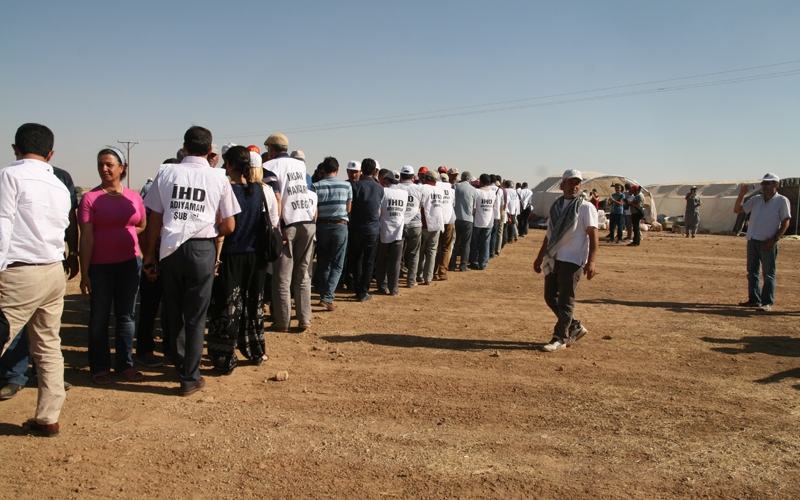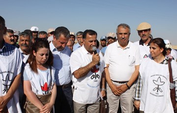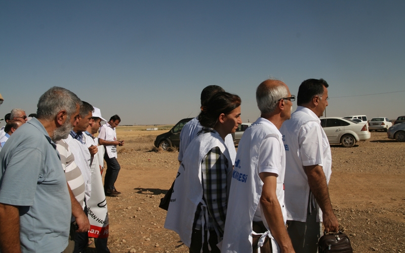 Urfa’nın Suruç ve Akçakale ilçeleri arasında bulunan sınır hattında, terör örgütü Irak Şam İslam Devleti’nin (IŞİD) Rojava’nın Kobanê’ye Kantonu’na yönelik saldırılarını protesto etmek amacıyla çadır eylemi başlatan yurttaşlar, bölgede bulunan İHD şube ve temsilcileri tarafından ziyaret edildi. Açılan çadırlarda bulunan yurttaşlarla sohpet eden İnsan hakları savunucuları, ardından bir basın açıklaması gerçekleştirdi. Açıklama öncesi bir konuşma yapan İHD Genel Başkanı Yardımcısı Osman Süzen, çadır eylemleri ile gerçekleşen direnişi anlamlı bulduklarını ve "Her zaman yanınızda olacağız" sözleri ile eylemde bulunan yurttaşları desteklerini belirtti.