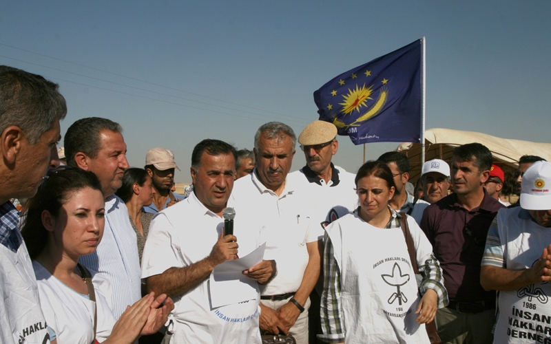 İHD’nin bölgede bulunan 13 Şubesi ve 3 Temsilciliği adına ortak hazırlanan basın metnin okuyan İHD Diyarbakır Şube Başkanı Raci Bilici, Kobanê'de; uluslararası şer odaklarının desteğiyle bir halkın özgürlük umutlarına saldıran bir çete yapılanmasının olduğunu belirtti. Bilici, IŞİD’in gerçekleştirdikleri katliamlarla aslında İslam dinine de hakaret eden bu grup olduğunu ve amaçlarının sanıldığı gibi bir İslam devleti kurmak olmadığını belirtti. Bilici “Amaçları, iki yıla yakın bir zamandır bölgelerinde yaşayan halklarla demokratik bir yapılanmaya adım atan ve büyük emeklerle özerkliği inşa etmeye çalışan Kürt halkının yarattığı kazanımları ortadan kaldırmaktır” diye konuştu.