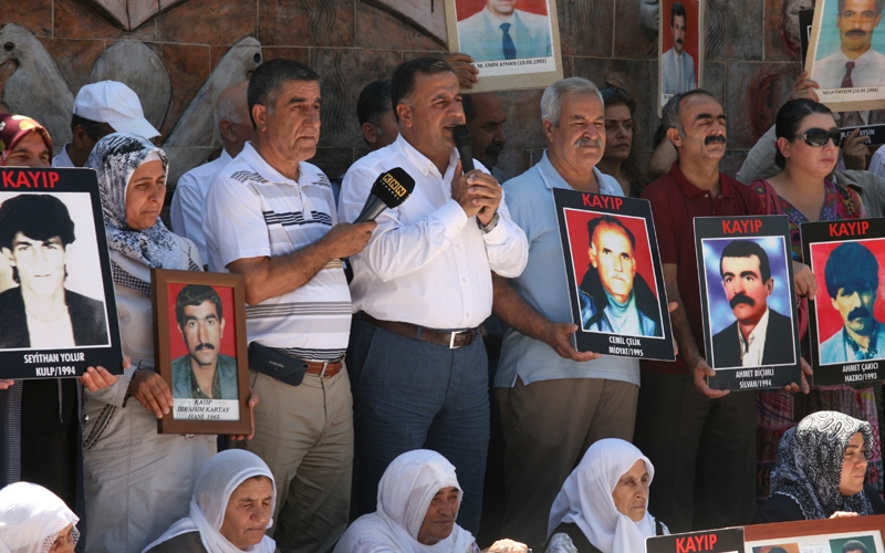 Eylemde bir konuşma yapan İHD Diyarbakır Şube Başkanı Raci Bilici, her hafta olduğu gibi bu haftada kayıpların akıbetini sormak için toplandıklarını belirterek, aradan geçen 286 haftaya rağmen siyasal iktidarın bu konuda hiçbir girişimde bulunmadığını söyledi. Kayıpların akıbetinin ortaya çıkarılmaması ve faillerinin yargı önüne çıkarılıp cezalandırılmaması durumda, sorumlusunun bugün ki Cumhurbaşkanı, Başbakan ve bürokratlar olacağını belirten Bilici, çünkü kendileri için muhatabın Türkiye Cumhuriyeti devleti olduğunu ifade etti.