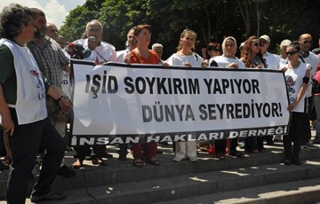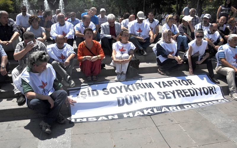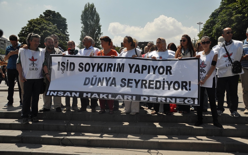 İnsan Hakları Derneği (İHD) üyeleri, IŞİD çetelerinin bölge yaptığı katliamları protesto etmek amacıyla, Güvenpark'ta basın açıklaması yaptı. Açıklamada, "IŞİD soykırım yapıyor Dünya seyrediyor" yazılı pankart açan İHD üyeleri, "Em hemû Kurdin em hemu Êzidî ne", "Yaşasın halkların kardeşliği" sloganları attı. Grup adına açıklama yapan İHD Genel Başkanı Öztürk Türkdoğan, IŞİD ve El-Kaide bağlantılı tüm çeteci grupların mazlum halklara uyguladığı soykırımı lanetlediklerini kaydetti.