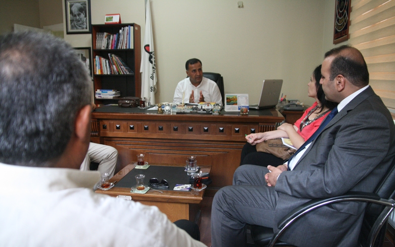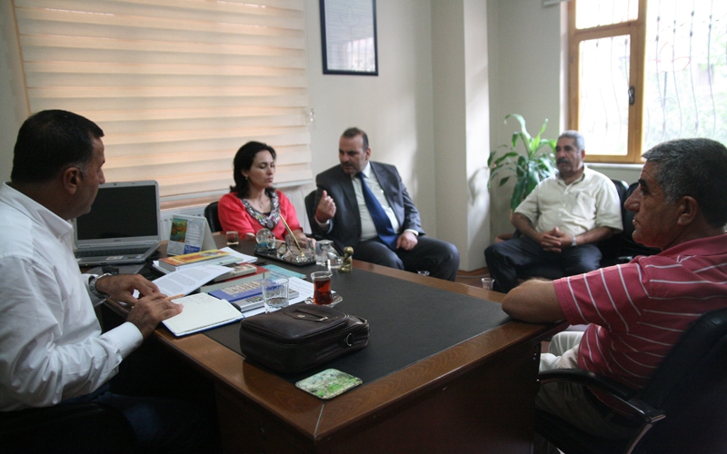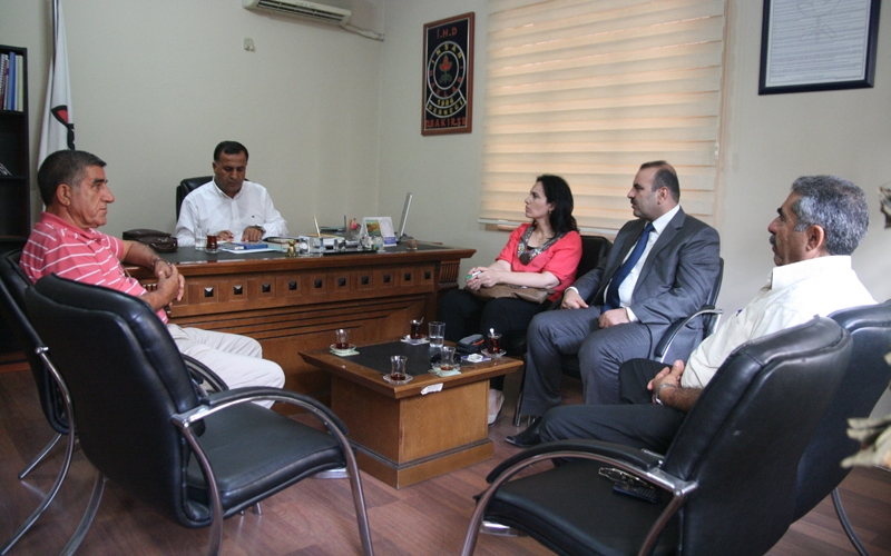 Demokratik Toplum Kongresi’nin (DTK) davetlisi olarak Diyarbakır’da bulunan Rojavalı yetkililerden oluşan bir heyet İHD Diyarbakır Şubesini ziyaret etti. Efrin Kantonu Eş Başkanı Anvar Moslem, Efrin Kantonu Dış İlişkiler Komisyonu Başkanı Silêman Cafer ve Cizîre Kantonu Eş Başkan Yardımcısı Nezira Gewriye’nin yer aldığı heyet, İHD Diyarbakır Şube Başkanı Raci Bilici ve Şube sekreteri Abdusselam İnceören tarafından karşılandı.