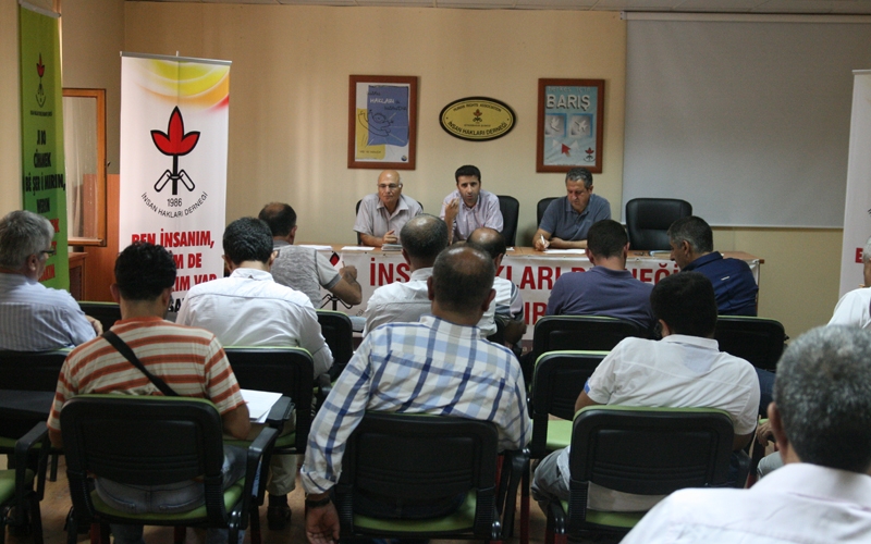 İHD’nin Bölgede bulunan Şube ve Temsilcililklerinin katılımıyla, ‘İHD 17. Genel Kurul’ gündemiyle bir toplantı gerçekleştirdi. İHD Genel Başkan Yardımcıları Serdar Çelebi ve Osman Süzen, Bölge Temsilcisi Şevket Akdemir'in giriş konuşmaları ile başlayan toplantıya, bölgede bulunan Şube Başkanları ve Temsilcilikler katıldı. Bölgede yaşanan gelişmeler ve insan haklarının durumu, şube ve temsilciliklerinin durumu gibi gündem maddelerinin ele alındığı toplantı, 17. Genel Kurula yönelik değerlendirme, tartışma ve önerilerin ardından sona erdi.
