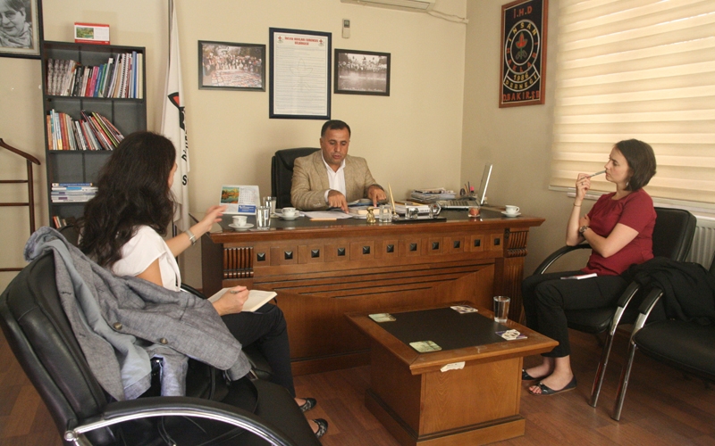 Avusturalya İkinci katibi ve Konsolosu Christine Mackay, İHD Diyarbakır şubesini ziyaret etti. Mackay, İHD Diyarbakır Şube Başkanı Raci Bilici tarafından karşılandı. Kürt Sorunu, çözüm süreci ve bölgede meydana gelen insan hakları ihlalleri ile ilgili konuların görüşüldüğü ziyarette Bilici, çözüm sürecinin bölge üzerindeki yansımaları ve hükümetinin bu konudaki tutumuna dair bilgilendirmede bulundu.
