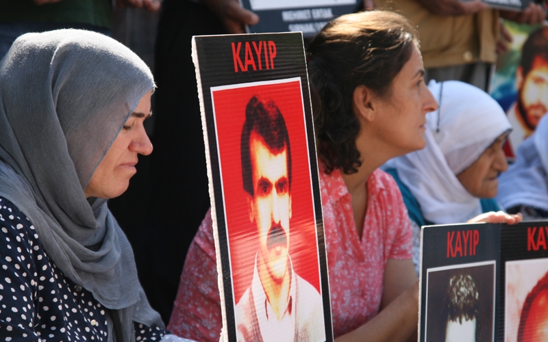 Yapılan konuşmaların ardından kayıp Mehmet Zeki Akyıldız ve tüm kayıplar için 5 dakika oturma eylemi yapıldı.