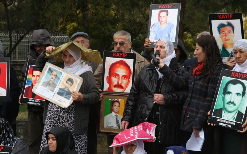 İHD Diyarbakır Şubesi ve kayıp yakınlarının “Kayıplar Bulunsun, Failler Yargılansın” sloganıyla her hafta düzenlediği oturma eylemlerinin 302’ncisi, Koşuyolu Parkı Yaşam Hakkı Anıtı önünde yağanak yağmur altında gerçekleştirildi. Eyleme İHD üye ve yöneticilerinin yanı sıra, Mezopotamyada Yakınlarını kaybedenler Derneği (MEYA-DER) yöneticileri, Barış Anneleri Meclisi üyeleri, kayıp yakınları ile insan hakları aktivistleri katıldı. Eylemde, 1995 yılında çalışmak için gittikleri Federal Kürdistan Bölgesi’nden döndükleri sırada, en son babaları ile Habur Sınır Kapısı’nda yaptıkları telefon görüşmesinin ardından kendilerinden bir daha haber alınamayan Mehmet Abdullillah ve Ali Osman Heyecan kardeşlerin akıbeti soruldu.
