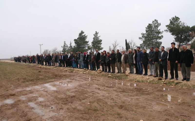 Açıklamanın ardın Kobanê sınırında insan zinciri oluşturuldu. Bu sırada kitle tarafından "Biji Berxwedana Kobanê" sloganları atıldı.