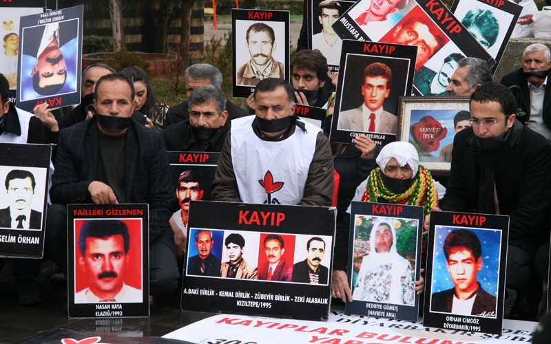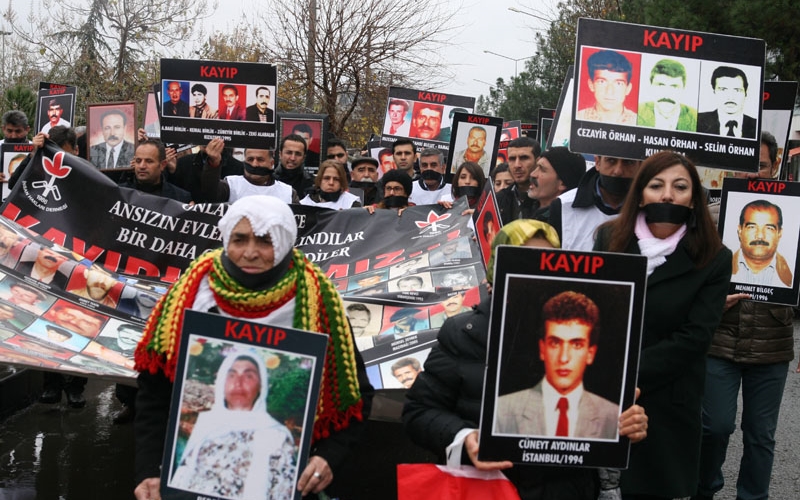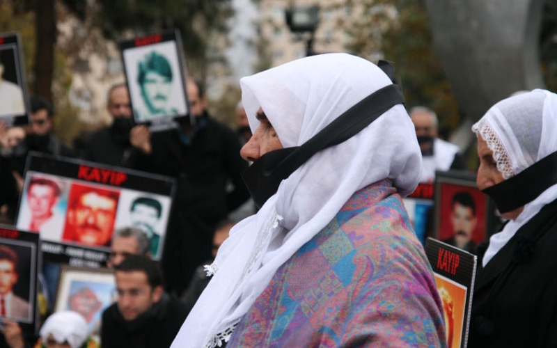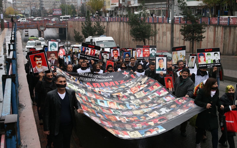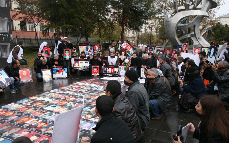 İHD Diyarbakır Şubesi ve kayıp yakınlarının “Kayıplar Bulunsun, Failler Yargılansın” sloganıyla her hafta düzenlediği oturma eylemlerinin 305’incisi Koşuyolu Parkı Yaşam Hakkı Anıtı önünde gerçekleştirildi. Oturma eylemi öncesi, insan hakları haftası etkinlikleri kapsamında Ofis AZC Plaza önünde bir araya gelen kayıp yakınları ve insan hakları savunucuları buradan oturma eyleminin yapıldığı alana kadar bir yürüyüş gerçekleştirdi. Yürüyüş sırasında ve oturma eyleminde siyah bant ile, devletin ve hükümetin kayıplar ile ilgili tutumu protesto edildi. Yürüyüşü ve oturma eylemine İHD Diyarbakır Şubesi, TİHV Diyarbakır Temsilciliği, Diyarbakır Barosu, Mezopotamya Hukukçular Derneği (MHD), Diyarbakır Tabip Odası, Mezopotamyada Yakınlarını kaybedenler Derneği (MEYA-DER) yöneticileri, Tutuklu ve Hükümlü Aileleri Dayanışma Derneği (Diyar TUHAD-DER) yöneticileri, Barış Anneleri Meclisi üyeleri, kayıp yakınları ile insan hakları aktivistleri katıldı.