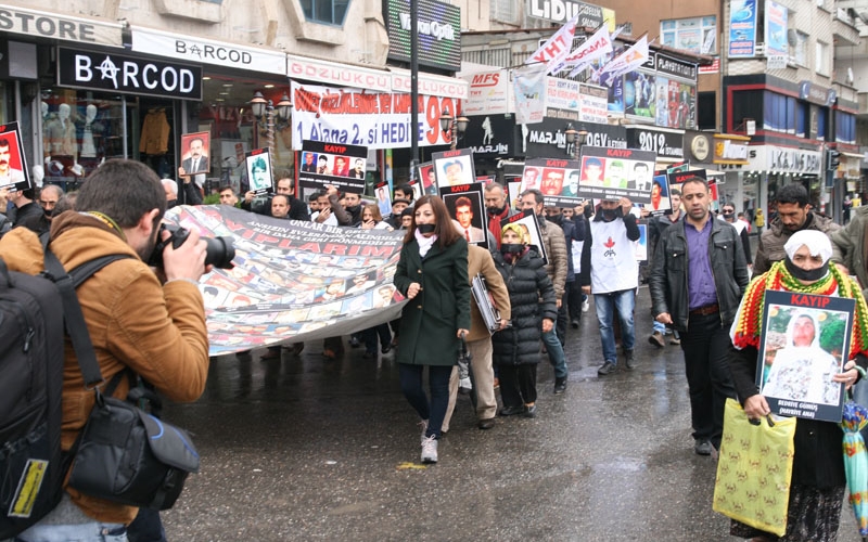 Yürüyüşe geçmeden önce kısa bir konuşma yapan İHD Genel Başkan Yardımcısı ve Diyarbakır Şube Başkanı Raci Bilici, hükümetin kayıplar konusunda ki tutumunu protesto etmek amacıyla siyah bantlarla ağızlarını kapayarak sessizce yürüyeceklerini, ardından da oturma eylemi yapacaklarını söyledi. Bilici, her hafta kayıpların bulunması, faili meçhul cinayetlerin aydınlatılması ve faillerinin bulunup yargı önüne çıkarılması ile ilgili taleplerini bir kez daha yineledi. Bilici, bununla birlikte geçmişle yüzleşmenin sağlanmasının önemine değinerek, devletin geçmiş dönemlere ait arşivlerini açmasını istedi.