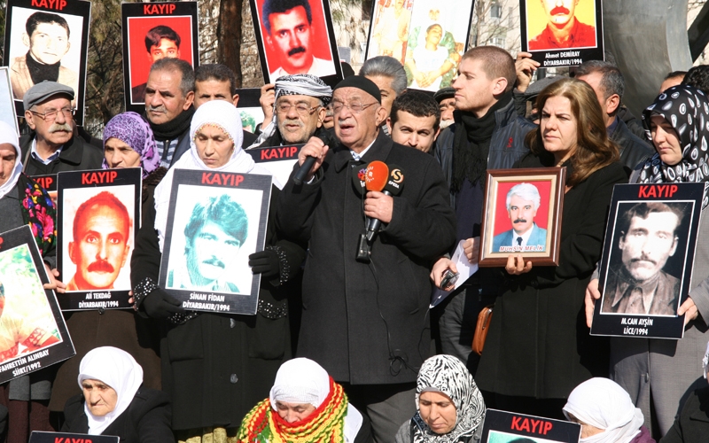 Eylemden önce bir konuşmada bulunan İHD Diyarbakır Şube Yönetim Kurulu Üyesi Av Muhterem Süren, ‘Kürdistan’da 90’lı yıllarda işlenen katliamların ve insanlık suçlarının faillerinin ortaya çıkarılması ve yargılanması talebiyle 310 haftadır bu alanda bulunduklarını belirterek, adalet talebinin yükseltilmesi talebiyle tüm kesimlere destek çağrısında bulundu. İnsanlığa karşı işlenen suçların faillerinin ortaya çıkarılmaması ve gizlenmeye çalışılmasının nedenin cezasızlık olduğunu dikkat çeken Süren, katledilişinin sekizinci yılını geride kalan Gazeteci Hrant Dink Cinayetini örnek gösterdi. Süren “Faillerin gizlendiğini, saklanmaya çalışıldığını biz bir kez daha bu dosyada gördük. Biz bu durumu kabullenmeyeceğiz. Kayıp yakınları olarak, cezasızlık halinin sona erdirilmesini talep ediyoruz. Devletin bir an önce Hrant Dink Cinayetinde ki sorumluluğu üstlenmesini bekliyoruz. Hrant’la, Ermeni Soykırımı ile halklara karşı işlenmiş soykırımlarla yüzleşilmesini bekliyoruz” diye konuştu.