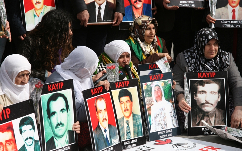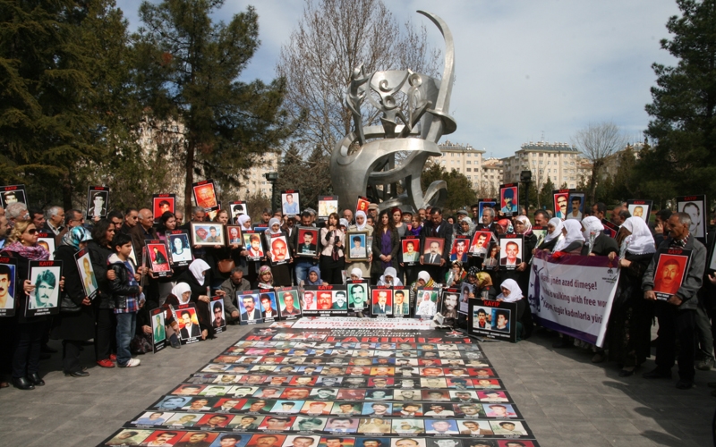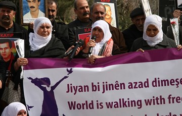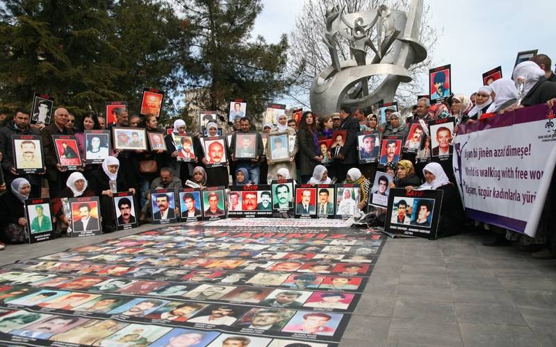 İHD ve Kayıp yakınların “Kayıplar Bulunsun Failler Yargılansın” sloganı ile her hafta düzenlediği oturma eylemlerinin 317’ncisi Koşuyolu Parkı Yaşam Hakkı Anıtı önünde gerçekleştirildi. Üzerinde kayıpların fotoğraflarının bulunduğu dev pankart ile “Yaşam, Özgür kadınla yürüyor!” yazılı pankartın açıldığı eyleme, İHD Diyarbakır Şubesi yönetici ve üyeleri, Mezopotamya Yakınlarını Kaybedenler Derneği (MEYA-DER) yöneticileri, Barış Anneleri Meclisi üyeleri, CHP Diyarbakır İl Örgütü Kadın Kolları üyeleri, insan hakları aktivistleri ve kayıp yakınları katıldı. 8 Mart Dünya Emekçi Kadınlar Gününe atfedilen eylemde bir konuşma yapan İHD Diyarbakır Şubesi Hukuk ve Kadın Komisyonu Üyesi Av Gamze Yalçın ‘Bu coğrafyaya barış gelecekse, annelerin emekleri ve yürekleri ile gelecek. Kadın emeği ile gelecek’ diye belirtti.