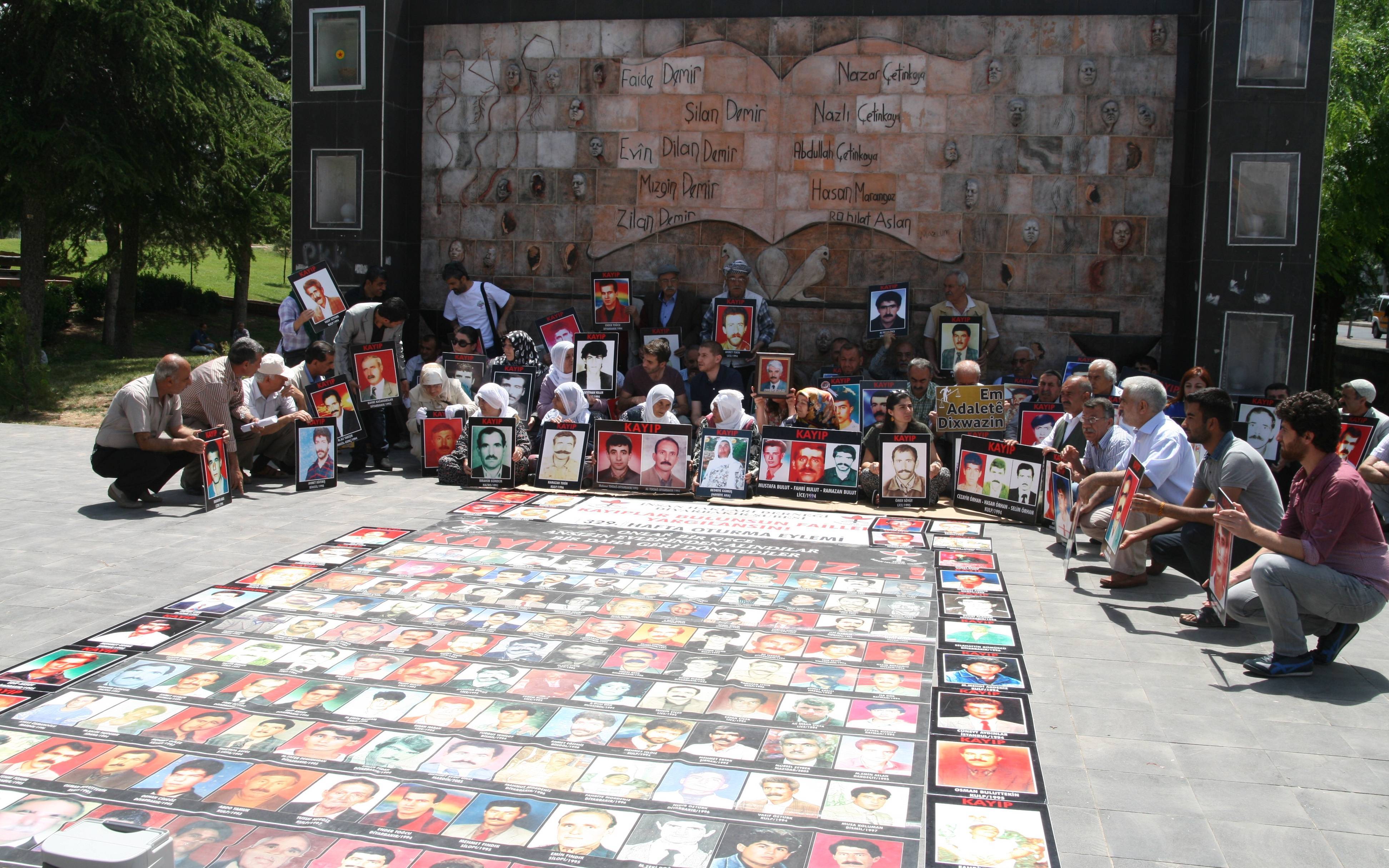 İHD ve Kayıp yakınların “Kayıplar Bulunsun Failler Yargılansın” sloganı ile her hafta düzenlediği oturma eylemlerinin 329’uncusu Koşuyolu Parkı Yaşam Hakkı Anıtı önünde gerçekleştirildi. Eyleme İHD Diyarbakır Şubesi yönetici ve üyeleri, Barış Anneleri Meclisi üyeleri, kayıp yakınları ve insan hakları aktivistleri katıldı. Eylemde, 1994 yılında Mardin’in Midyat ilçesine bağlı Güzel ağaç köyünde, özel harekat timlerinin gerçekleştirdiği ev baskınında taranarak katledilen Mümine ve Tayyibe Sincar kardeşlerin faillerinin cezalandırılması talep edildi.
