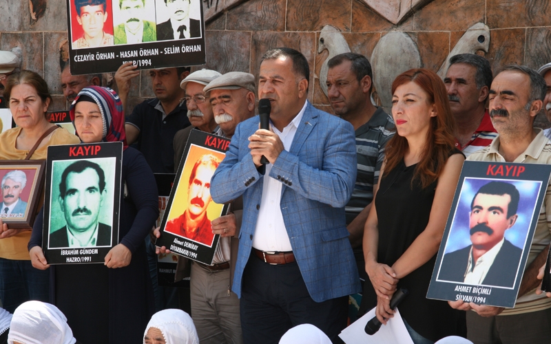 Eylem öncesi bir konuşmada bulunan İHD Genel Başkan Yardımcısı ve Diyarbakır Şube Başkanı Raci Bilici, kayıpların bulunması ve faillerin yargı önüne çıkarılması ile ilgili bu güne dek bir adım atılmadığını belirtti. Devlete seslenen Bilici “ Eğer Kürdistan halkı ile bir arada onurlu bir şekilde yaşamak gibi bir amacınız varsa, kayıplarımızı bulun ve failleri yargılayın. Şu anda izliyoruz. Koalisyon oluşturma çalışmaları yapan siyasi partilerin ağzından kayıplar ile ilgili tek kelime çıkmıyor. Geçmişle yüzleşme konusunda herhangi bir projeye sahip olduklarını göremiyoruz. Bizler, geçmişle yüzleşme ve çözüm süreci konularının içersinde yer almadığı bir koalisyon hükümetini tanımayacağız” diye konuştu.