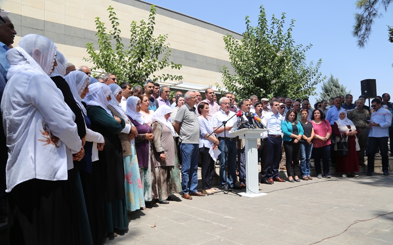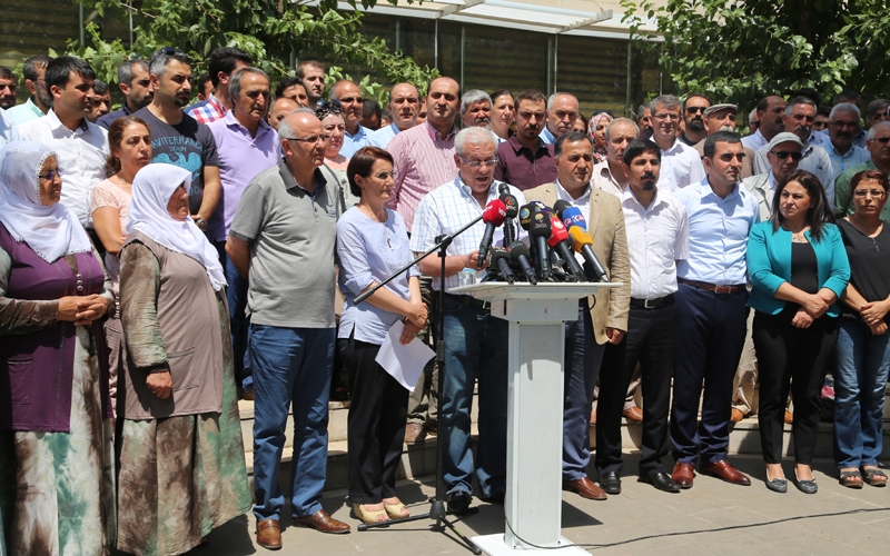 Bölge kentlerinde bulunan 640 sivil toplum örgütü, kurum ve oluşum, düzenledikleri basın açıklamasıyla son günlerde artış çatışma ortamı ve AKP hükümeti tarafından devreye konulan savaş konseptine karşı ortak bildiri yayınladı. Sümerpark Resepsiyon Salonu önünde gerçekleşen açıklamaya, kurum temsilcileri katılırken açıklama Kürtçe ve Türkçe olarak okundu. Açıklamanın Kürtçesi DTK Dil Komisyonu üyesi Mülkiye Birtane, Türkçesini ise GÜNSİAD Başkanı Mehmet Şah Bedirhanoğlu okudu. Bölge kentlerindeki sivil toplum örgütleri olarak savaşa karşı tutum aldıklarını belirten Bedirhanoğlu, "2013 Diyarbakır Newroz'unda Sayın Öcalan'ın okunan mektubu ile birlikte tüm Türkiye toplumlarında barışın, kardeşliğin ve gerçek demokrasinin Türkiye'de tesis edileceği konusunda büyük bir inanç ve umut gelişti. Sonradan geliştirilen diyaloglar, görüşmeler ve yapılan açıklamalar bu konudaki beklentileri daha da güçlendirdi. Yapılan tüm kamuoyu yoklamalarında demokratik çözüm sürecinin büyük bir toplumsal destek gördüğü açıkça görüldü. Yine bu süreçte, ekonomiden, sosyal ve siyasal hayata kadar toplumsal yaşamın tüm alanlarında büyük bir rahatlama yaşanmaya başladı. En başta da, insan ölümleri son buldu" denildi.