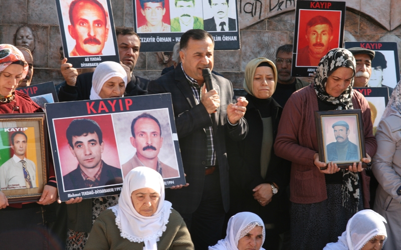Oturma eyleminden önce bir konuşmada bulunan İHD Genel Başkan Yardımcısı ve Diyarbakır Şube Başkanı Raci Bilici, kayıpların devlet organizasyonunda gerçekleştiğini belirtti. Failleri bilen, koruyan bir devlet aklının, failleri de açığa çıkarmayacağını bildiklerini söyleyen Bilici, “Yargı karşısına çıkarılanlar da, onlarca insanın katlini gerçekleştirenler Cemal Temizöz gibiler de, yargı tarafından aklanıyor. Yargı bu ülkede, güvenirliliğini yitirmiştir” diye konuştu.