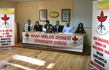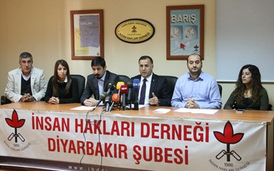 İnsan Hakları Derneği (İHD) Diyarbakır Şubesi, Türkiye İnsan Hakları Vakfı (TİHV) Diyarbakır Temsilciliği ve Diyarbakır Tabip Odası tarafından, Diyarbakır’ın Silvan ilçesinde 3-13 Kasım 2015 tarihlerinde uygulanan sokağa çıkma yasağı sırasında meydana gelen yaşam ve insan hakları ihlaller ilişkin gerçekleştirilen incelemeler kapsamında hazırlanan rapor, İHD Diyarbakır Şubesinde düzenlenen bir basın toplantısı ile kamuoyuna duyuruldu. Toplantıya İHD Genel Başkan Yardımcısı ve Diyarbakır Şube Başkanı Raci Bilici, İHD MYK Üyesi ve Doğu-Güneydoğu Anadolu Bölge Temsilci Abdusselam İnceören, THİV Diyarbakır Temsilcisi Barış Yavuz, Diyarbakır Tabip Odası Başkanı Cengiz Günay ve İHD Diyarbakır Şube yöneticileri katıldı.