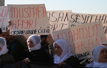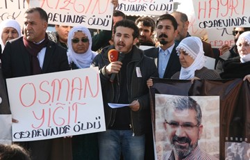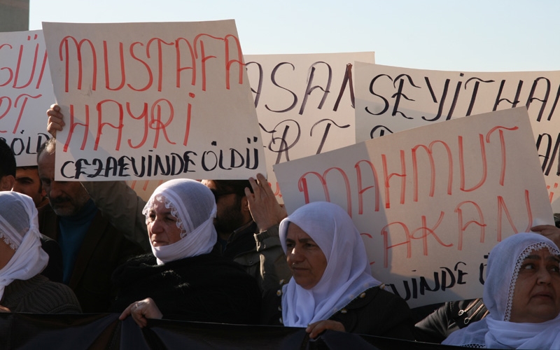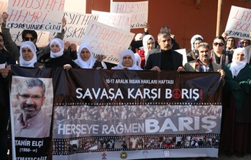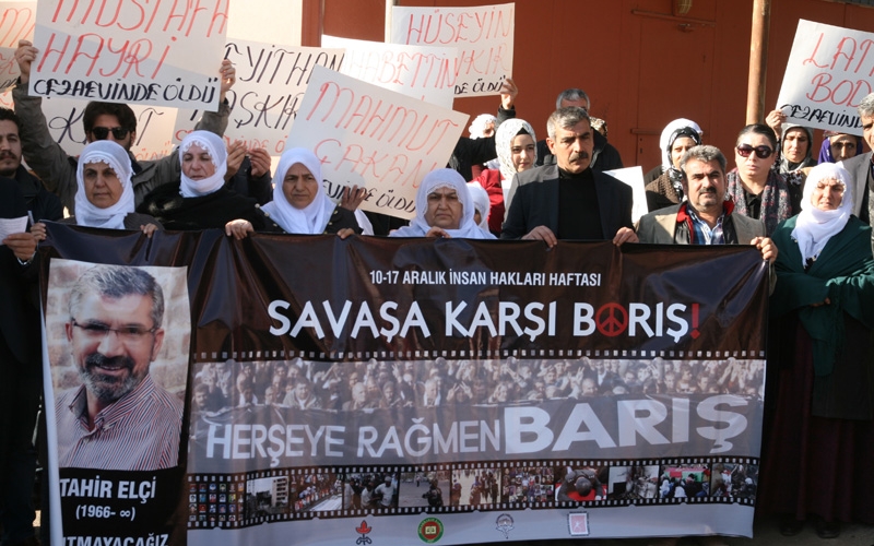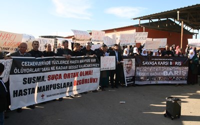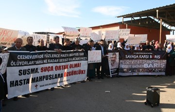 İHD Diyarbakır Şubesi (İHD), Diyarbakır Barosu, Diyarbakır Tabip Odası (DTO) ve Türkiye İnsan Hakları Vakfı (TİHV) tarafından organize edilen 10-17 Aralık İnsan Hakları Haftası etkinlikleri kapsamında; hasta mahpuslarla dayanışmak amacıyla ve cezaevlerindeki hak ihlallerine dikkat çekmek amacıyla, Diyarbakır D Tipi Kapalı Cezaevi önünde basın açıklaması gerçekleştirildi. Açıklamaya İHD, TİHV, Baro ve Tabip Odası yönetici ve üyeleri ile tutuklu yakınlarının katıldığı eylemde, üzerinde “Savaşa Karşı Barış” ve “Öleceksem Dört Ayaklı Minarenin Altında Öleyim” yazılı pankartlar ve cezaevinde yaşamını yitiren hasta mahpusların isimlerinin yazılı olduğu dövizler taşındı.