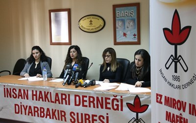 İHD Diyarbakır Şubesi Kadın Komisyonu, 2015 yılı Doğu ve Güneydoğu Kadın Hakları İhlalleri Raporu'nu, şube binasında düzenlediği basın toplantısı ile kamuoyuna duyurdu. Toplantıya İHD Yönetim Kurulu ve Kadın Komisyonu Üyeleri Gülistan Yalçındağ, Hatice Demir, Rehşan Bataray ve Pınar Dalkuş katıldı.