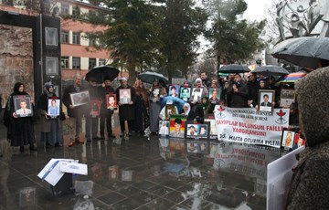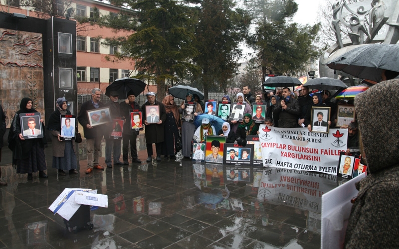 İHD ve Kayıp yakınların “Kayıplar Bulunsun Failler Yargılansın” sloganı ile her hafta düzenlediği oturma eylemlerinin 365’incisi, Koşuyolu Parkı Yaşam Hakkı Anıtı önünde gerçekleştirildi. Kayıp fotoğraflarının taşındığı eyleme İHD Diyarbakır Şubesi yönetici ve üyeleri, kayıp yakınları, Barış Anneleri Meclisi üyeleri ve insan hakları aktivistleri katıldı. Sağanak yağmur altında gerçekleştirilen eylemde, 1994 yılında Diyarbakır’ın Lice ilçesinde yol kontrolü yapan askerlerce gözaltına alınan ve kendisinden bir daha haber alınamayan Ahmet Tekin’in akıbeti soruldu.