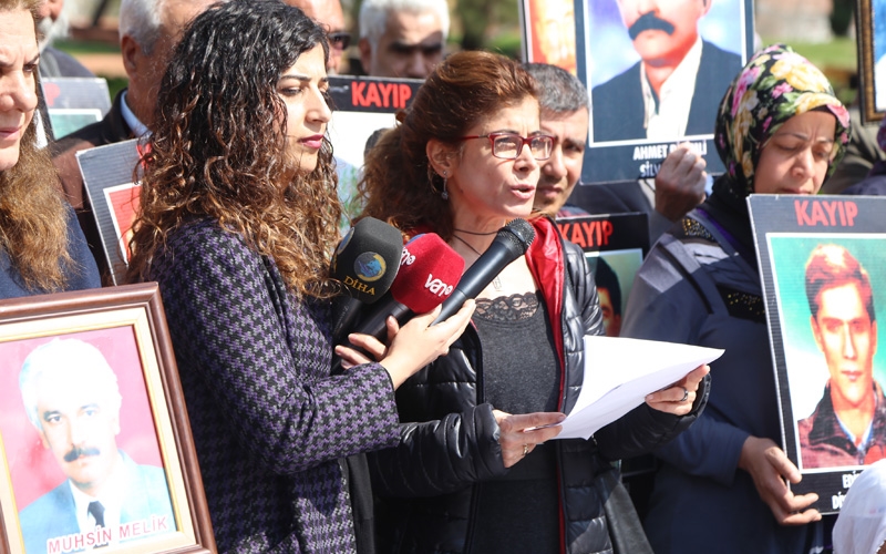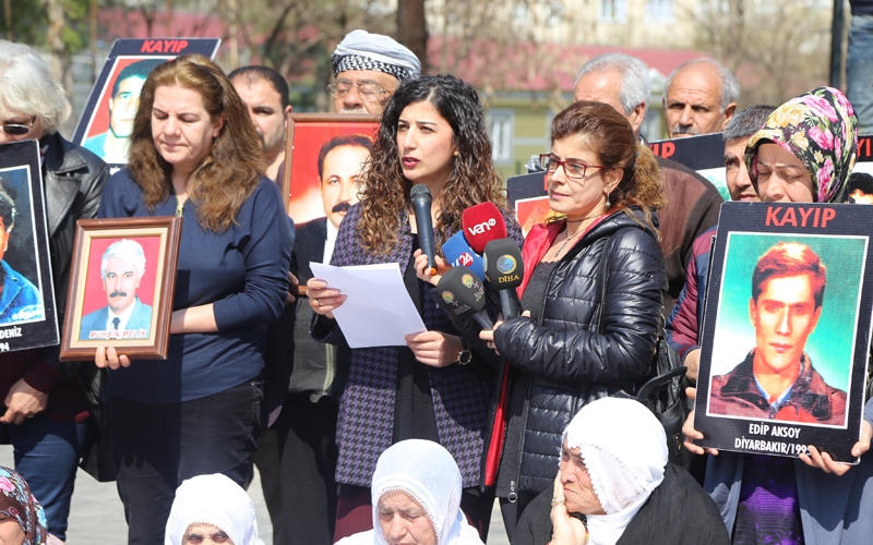 Oturma eylemi öncesi konuşan İHD Diyarbakır Şube yönetici Av Hatice Demir, 90’lı yıllarda işlenen suçların, zorla kaybettirmelerin, işkencelerin hesabının hala sorulduğunu, ancak hala 90’lı yıllarda işlenen suçların failleri yargılanmadığını, ve buna rağmen son 8 ayda 90’lı yılların aşan suçların işlendiğini kaydetti.