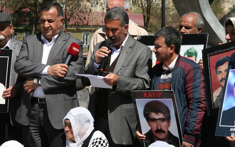 Oturma eylemi öncesi konuşan İHD Genel Başkan Yardımcısı ve Diyarbakır Şube Başkanı Raci Bilici, kayıp yakınları olarak haklı bir mücadele verdiklerini söyledi. Kayıpların ve faili meçhul cinayete kurban gidenlerin hesabının, gün gelecek hem tetiği çekenlerden hem de siyasi sorumlularından sorulacağının söyleyen Bilici, “Yargı karşısına çıkacaklar ve yargılanacaklar. Ölmüşlerse bile gıyabında hesabı sorulacak” diye konuştu.