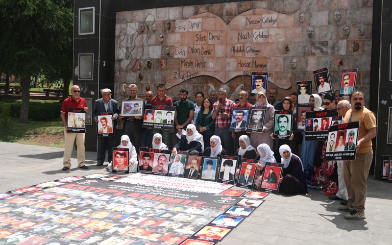 İnsan Hakları Derneği (İHD) Diyarbakır Şubesi ve Kayıp yakınların “Kayıplar Bulunsun Failler Yargılansın” sloganı ile her hafta düzenlediği oturma eylemlerinin 381’incisi Koşuyolu Parkı Yaşam Hakkı Anıtı önünde gerçekleştirildi. Kayıp fotoğraflarının taşındığı eyleme İHD Diyarbakır Şubesi yönetici ve üyeleri, Halkların Demokratik Partisi (HDP) Grup Başvekili Çağlar Demirel, kayıp yakınları ve insan hakları aktivistleri katıldı. Eylemde, 1995 yılında Mardin ili Kızıltepe ilçesi Tilzerin köyünde asker tarafından düzenlenen operasyonda gözaltına alınan ve kendisinden bir daha haber alınamayan Mehmet Emin Abak’ın akıbeti sorulurken, gözaltında işkence ile katledilen ve su kuyusuna atılan Abak’ın kuzeni Mahmut Abak’ın ise faillerinin bulunup yargılanması talep edildi.