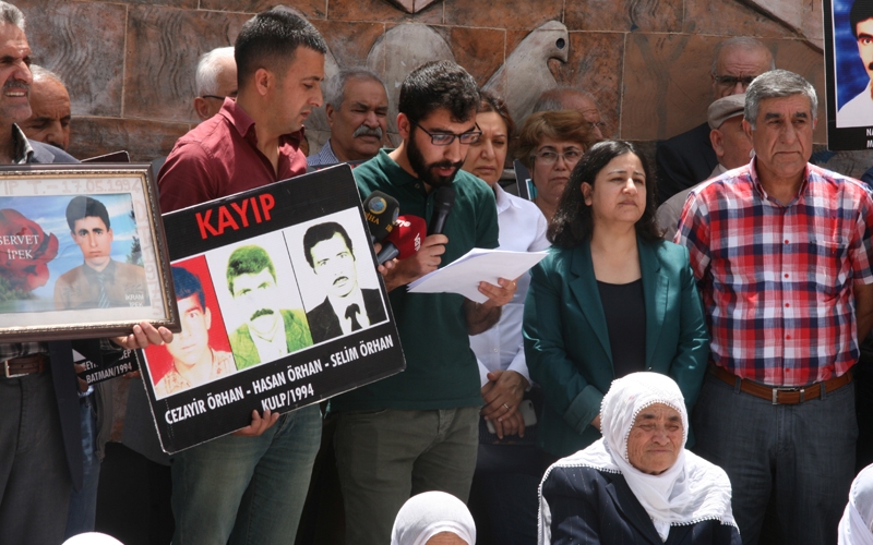 Oturma eylemi öncesi konuşan İHD Diyarbakır Şube sekreteri Abdusselam İnceören, “17-31 Uluslararası Gözaltında Kayıplar Haftası” içersinde bulunduklarını belirterek, kayıpların bulunması için verdikleri mücadeleyi sonuç alana kadar sürdüreceklerini söyledi. Tüm kayıp olaylarının devlet arşivlerinde kayıtlı olduğunu ve faillerin kimler olduğunun bilindiğini söyleyen İnceören, kayıp analarının kayıplarına ulaşmak için verdikleri mücadeleye dikkat çekti. İnceören, insan hakları savunucuları olarak bu mücadeleyi sürdüreceklerini belirtti.