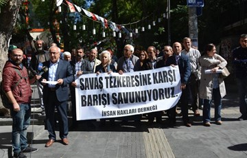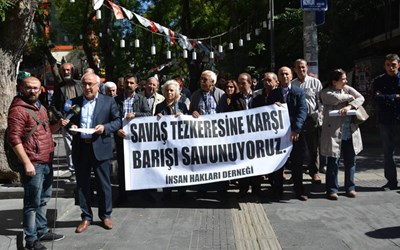 ANKARA- İHD Genel Merkezi, Meclis gündemine getirilen Suriye ve Irak tezkeresini düzenlediği basın açıklaması ile protesto etti. Açıklamada, hükümetin savaş politikaları yerine barış politikalarını uygulaması çağrısında bulunuldu.