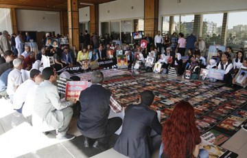 Konuşmaların ardından kayıp yakınları 5 dakikalık oturma eylemi yaptı.