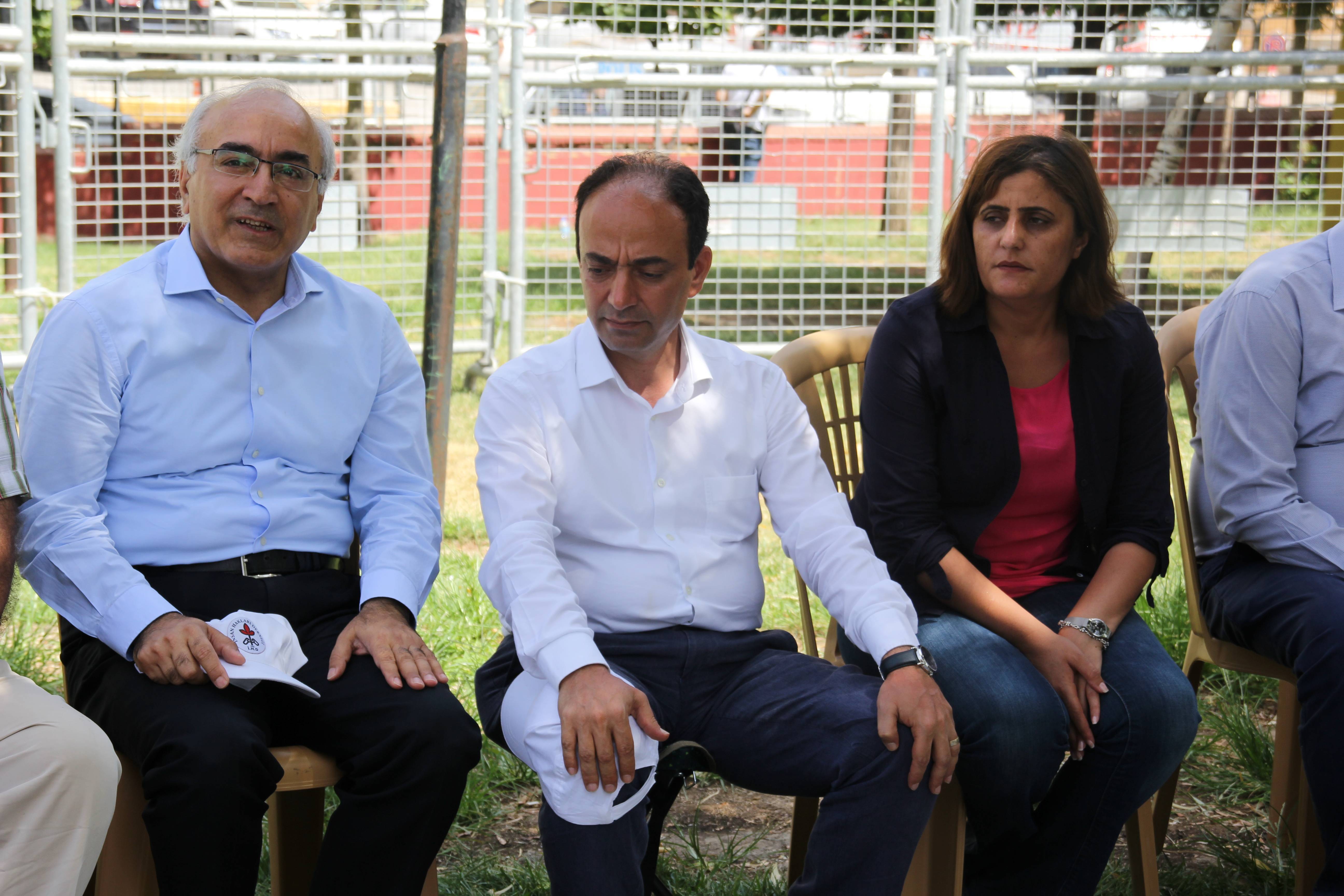 DİYARBAKIR- HDP'li milletvekilleri tarafından başlatılan adalet ve vicdan eylemini ziyaret eden İHD Eş Genel Başkanı Öztürk Türkdoğan, barışı savunmanın hak olduğunu söyledi.