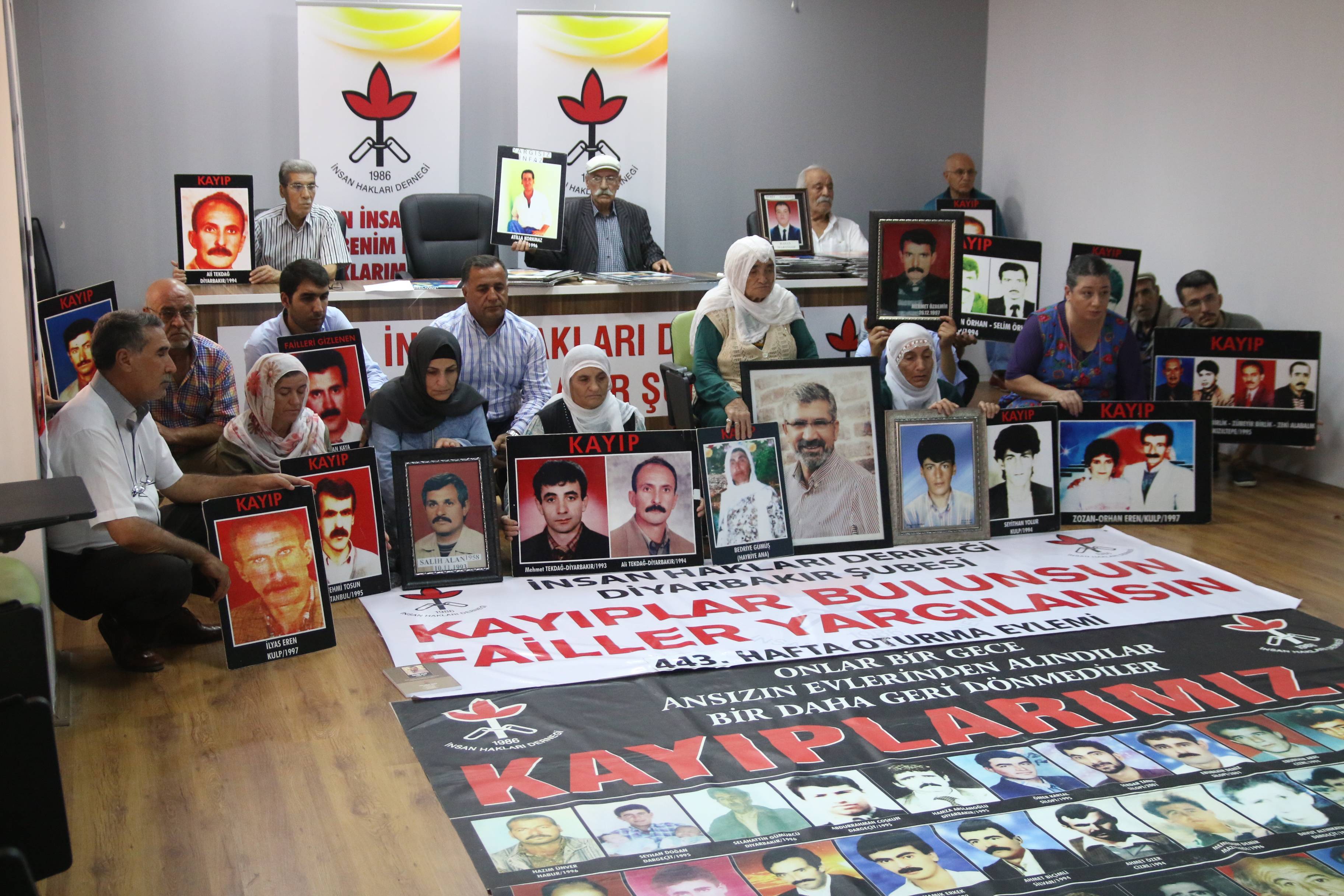 İHD ve Kayıp yakınların “Kayıplar Bulunsun Failler Yargılansın” sloganı ile her hafta düzenlediği oturma eylemlerinin 443’üncüsü, İHD Diyarbakır Şube binasında gerçekleştirildi. Kayıpların fotoğraflarının taşındığı eyleme İHD Diyarbakır Şubesi yönetici ve üyeleri, kayıp yakınları ve insan hakları aktivistleri katıldı. Eylemde, 1994 yılında Adana’da evden çıktıktan sonra kendisinden bir daha haber alınamayan M.Salih Taşdemir’in akıbeti soruldu.