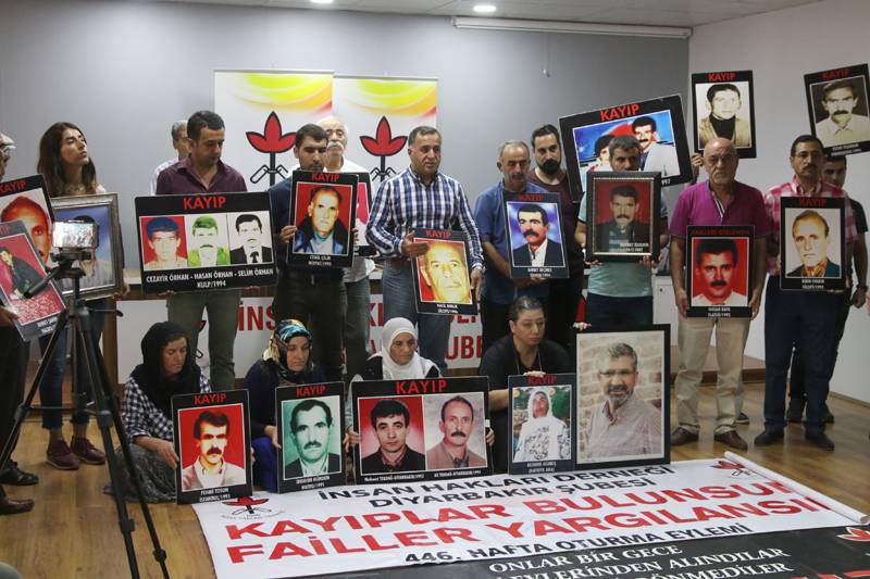İHD ve Kayıp yakınların “Kayıplar Bulunsun Failler Yargılansın” sloganı ile her hafta düzenlediği oturma eylemlerinin 446’ncısı, İHD Diyarbakır Şube binasında gerçekleştirildi. Kayıpların fotoğraflarının taşındığı eyleme İHD Diyarbakır Şubesi yönetici ve üyeleri, kayıp yakınları ve insan hakları aktivistleri katıldı. Eylemde, 1991 yılında Batman’dan Diyarbakır’ın Silvan ilçesine gitmek üzere müşterisini aldıktan sonra yola çıkan ve o günden bu yana kendisinden bir daha haber alınamayan Abdülhakim Kartal’ın akıbeti soruldu. Eylem öncesi konuşan İHD Genel Başkan Yardımcısı ve Diyarbakır Şube Başkanı Raci Bilici, 446 haftadır kayıp yakınları ile beraber mücadele ettiklerini belirterek, adalet arayışlarını ısrarla sürdüreceklerini kaydetti. Kayıpların ailelerinin gözü önünde kaybettirildiğini belirterek, hükümetin bugüne dek kayıplar hakkında herhangi bir açıklama yapmadığını söyledi.