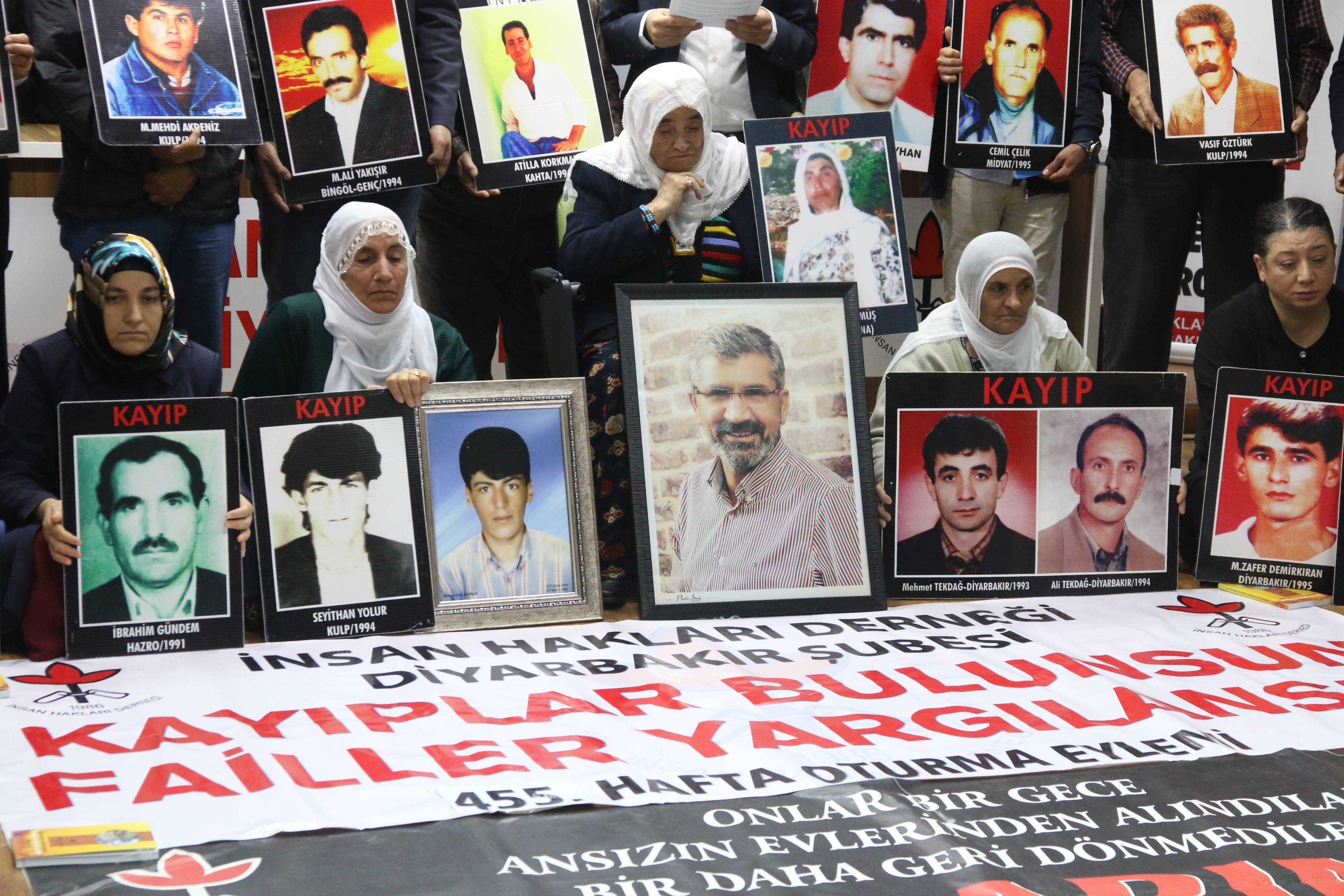 DİYARBAKIR – İHD Diyarbakır Şubesi ve kayıp yakınlarının “Kayıplar bulunsun, failler yargılansın” sloganıyla her hafta düzenlediği oturma eyleminin 455’incisini gerçekleştirildi. Eylemde, 1991 yılında İstanbul'da gözaltına alındıktan sonra kendisinden bir daha haber alınamayan Hüseyin Toraman'ın akıbeti soruldu.