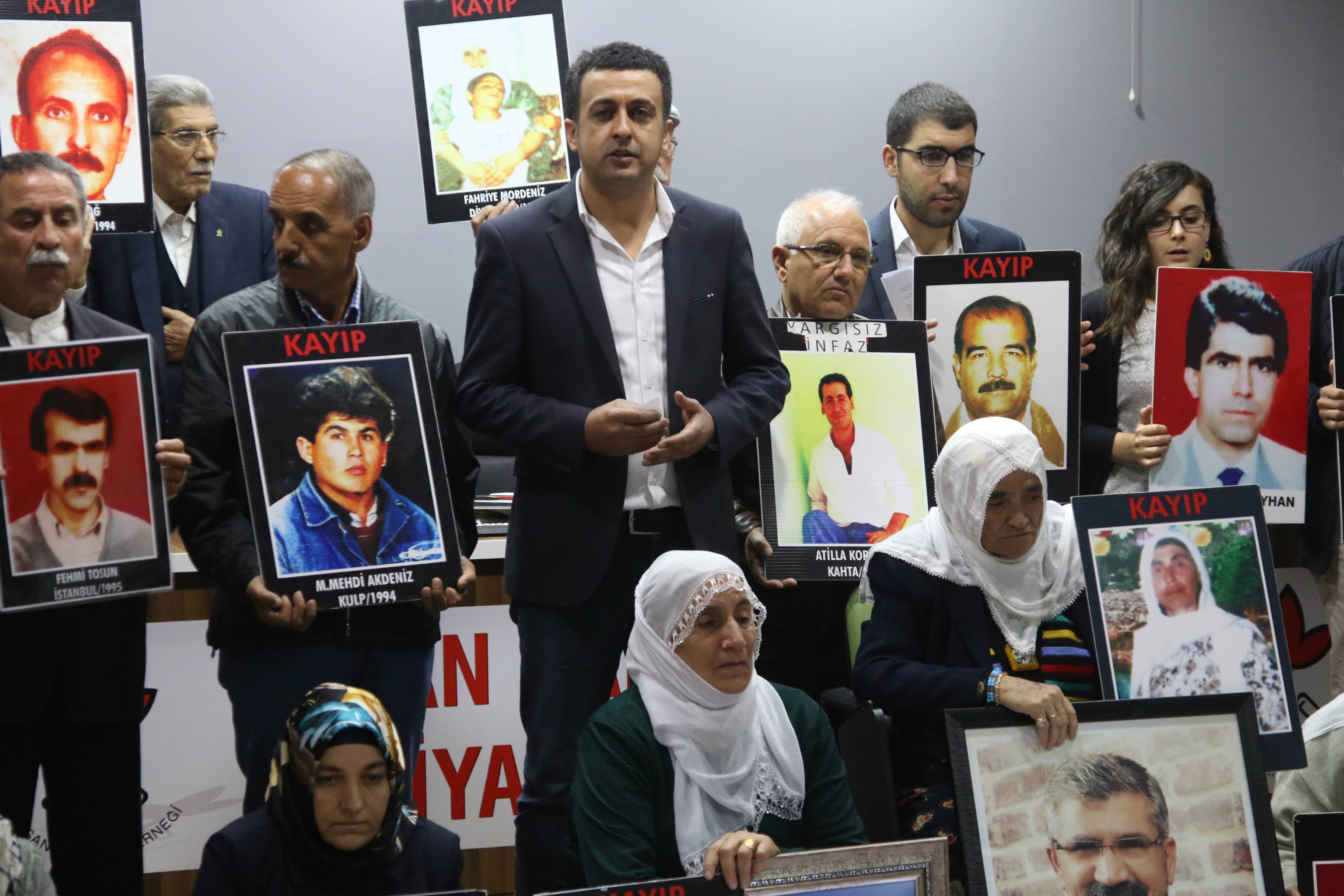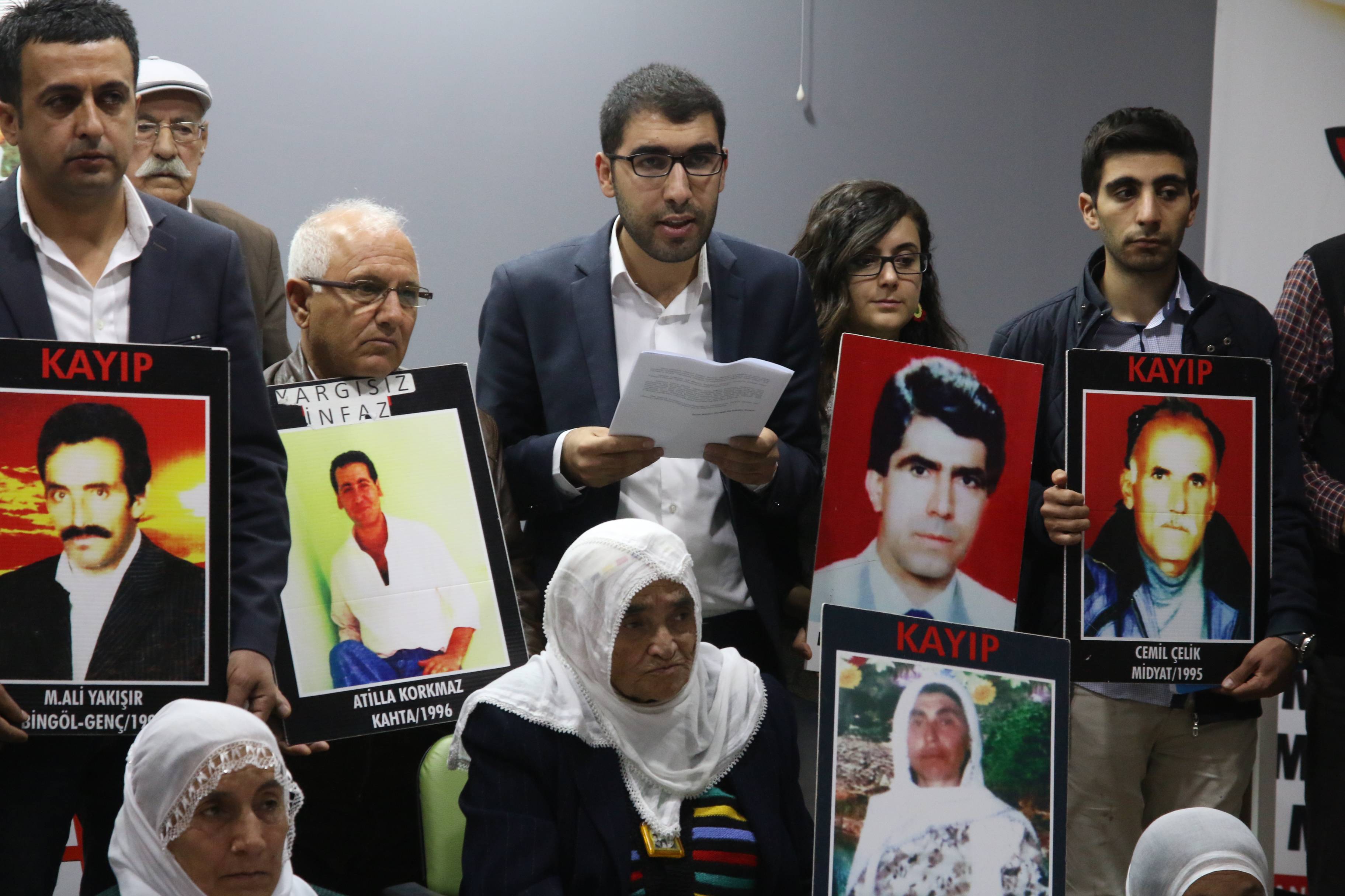 Eylemde konuşan İHD Kayıp Komisyonu üyesi Adnan Örhan, yakınlarının kaybedilmesine devletin sorumlu olduğunu belirterek, devletin failleri açığa çıkarma sorumluluğunu hatırlattı. Kayıpların faillerinin belgelerle kanıtlayarak yargıya sunduklarını ifade eden Örhan, “Maalesef failler devlet eliyle korunuyor. Bizler asla kabul etmeyeceğiz. Devlet bizim yakınlarımızın faillerini ortaya çıkarmak zorundadır” dedi. Kamuoyunda Berfo Ana olarak bilinen kayıp yakınlarından Berfo Kırbayır’a hükümet yetkililerinin verdiği sözleri hatırlatan Örhan, Berfo Ana’nın kayıp oğlunun kemiklerini bulamadan yaşamını yitirdiğini hatırlattı.