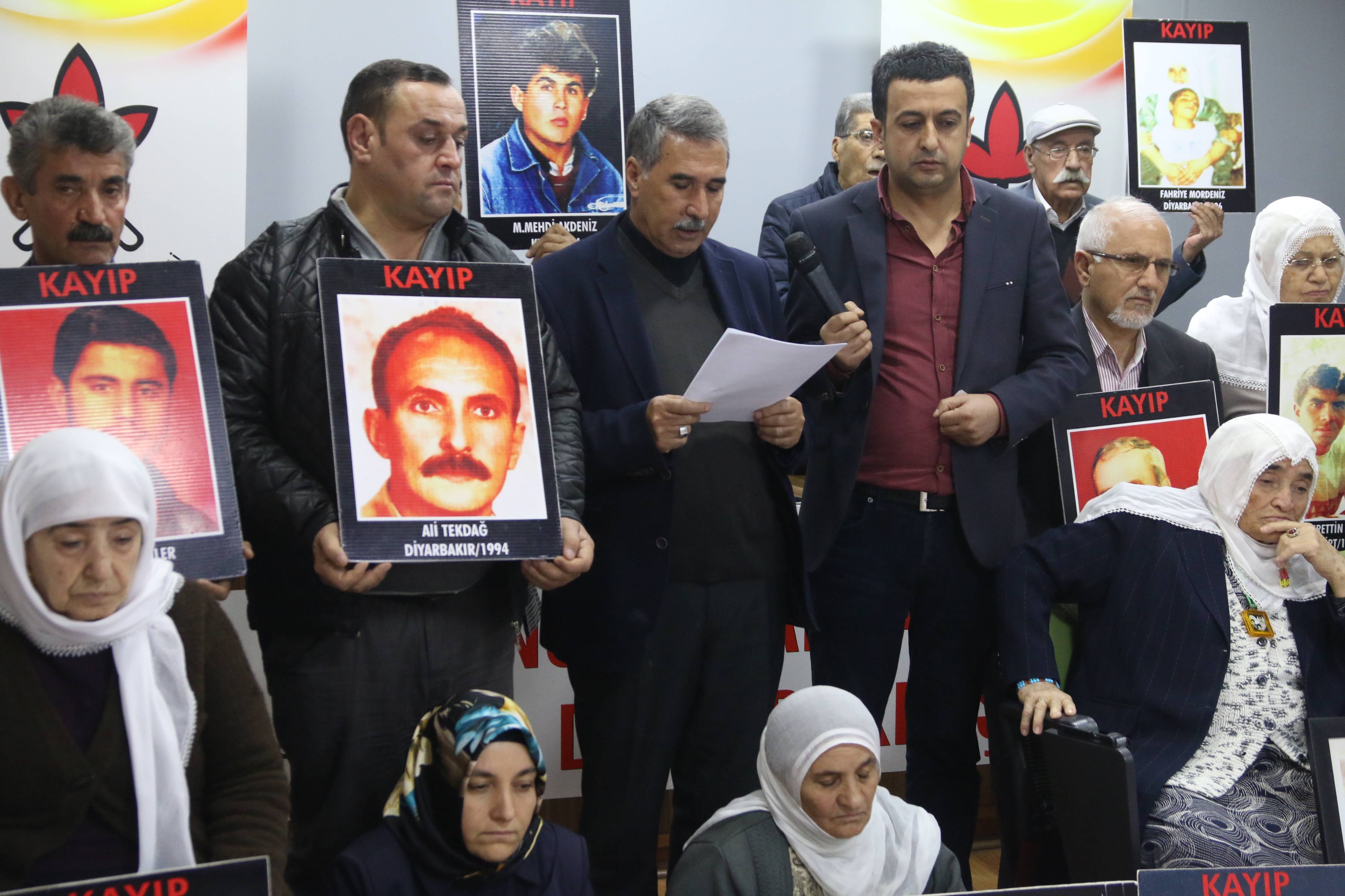 Örhan'ın konuşması ardından İHD Diyarbakır Şube Yöneticisi Emin Ermin, 13 Kasım 1994 yılında Diyarbakır'ın Dağkapı semtinde silahlı sivil kişiler tarafından kaçırılan ve 23 yıldır kendisinden bir daha haber alınamayan Ali Tekdağ'ın hikayesini paylaştı. Tekdağ’ın eşi Hatice Tekdağ’ın anlatımlarına yer verdiği konuşmasında Ermin, Tekdağ'ın silahlı kişiler tarafından kaçırıldığını ve bir daha haber alınamadığını dile getirdi. Ermin, ailenin defalarca savcılık ve Devlet Güvenlik Mahkemelerine (DGM) yaptığı başvurulara, “Buraya gelme” yanıtı aldığını söyledi.
