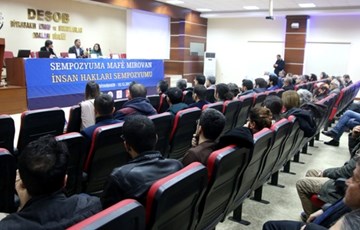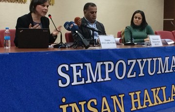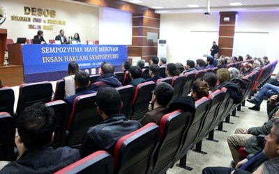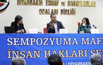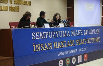 10-17 Aralık İnsan Hakları Haftası kapsamında İnsan Hakları Derneği (İHD) Diyarbakır Şubesi, Türkiye İnsan Hakları Vakfı (TİHV) Diyarbakır Temsilciliği, Diyarbakır Barosu, Diyarbakır Tabip Odası ve Hak İnisiyatifi tarafından organize edilen “İnsan Hakları Konulu Sempozyumu” düzenlendi. Diyarbakır Esnaf ve Sanatkarlar Odaları Birliği (DESOB) Konferans Salonu’nda düzenlenen sempozyuma insan hakları savunucuları, üniversite öğrencileri, sivil toplum örgütü temsilcileri katıldı. Son iki yılda Türkiye ve bölgede meydana gelen hak ihlallerinin durumunun ele alındığı ve İHD Genel Başkan Yardımcısı ve Diyarbakır Şube Başkanı Mehmet Raci Bilici’nin moderatörlüğünü yaptığı ilk oturumda, İnsan Hakları İzleme Örgütü (HRW) Türkiye Raportörü Emma Sinclair Webb Türkiye'deki ihlallere ilişkin sunumda bulunurken, İHD Diyarbakır Şube Yöneticisi Avukat Rahşan Bataray Saman da bölgedeki hak ihlallerine ilişkin sunum gerçekleştirdi.