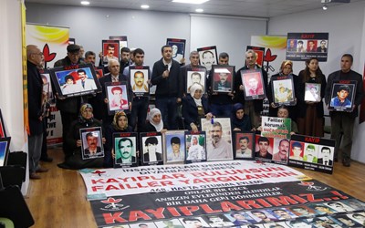 Yapılan açıklamanın ardından kayıp yakınları, beş dakikalık oturma eyleminde bulundu.