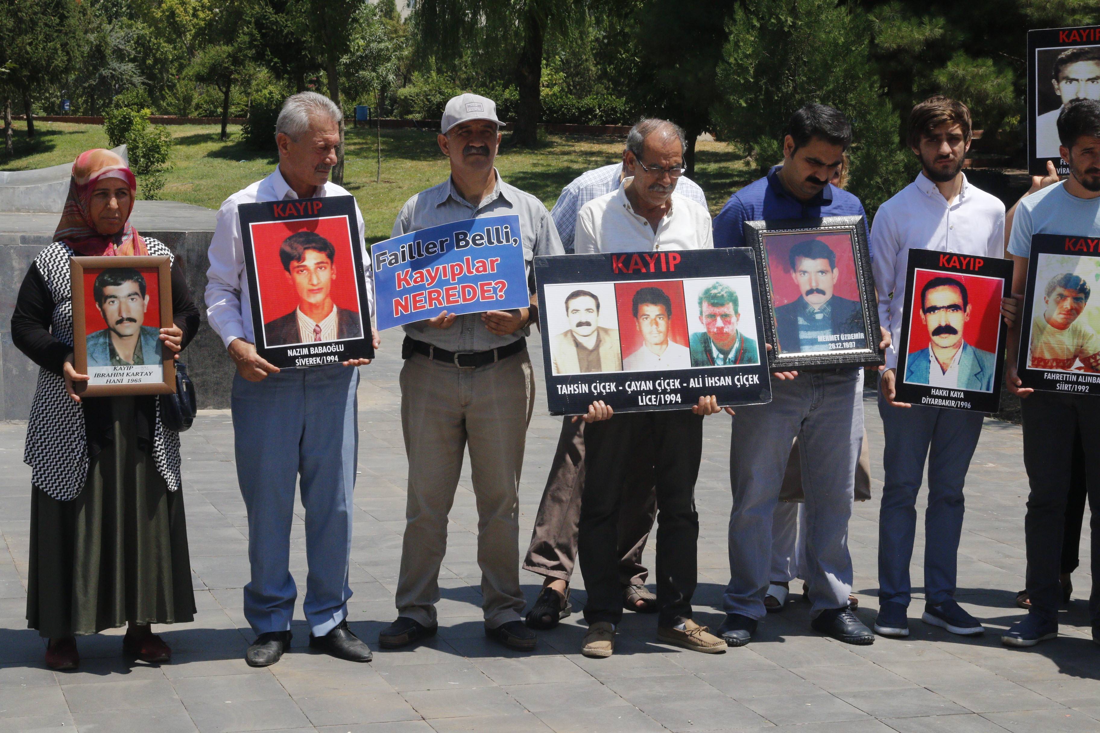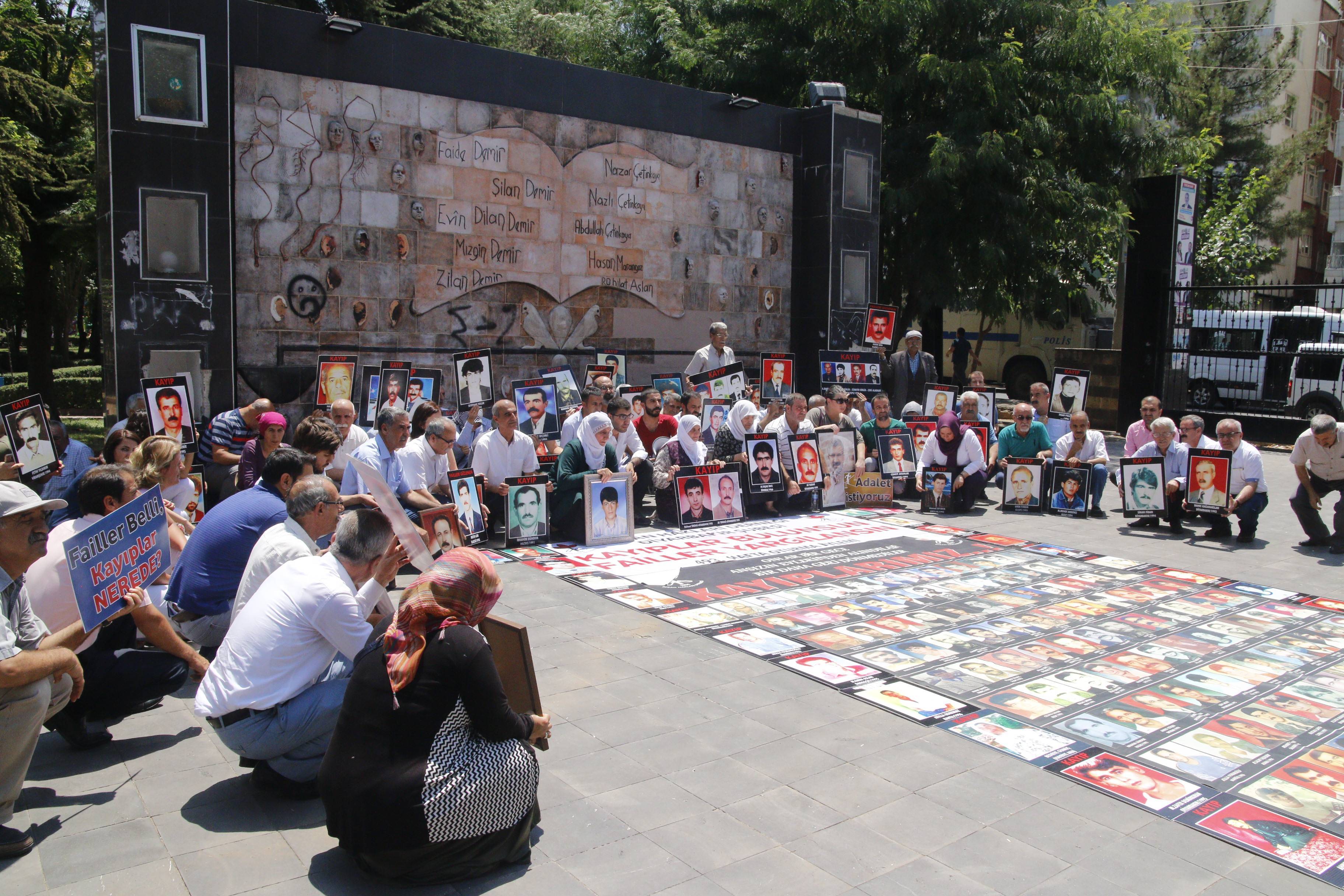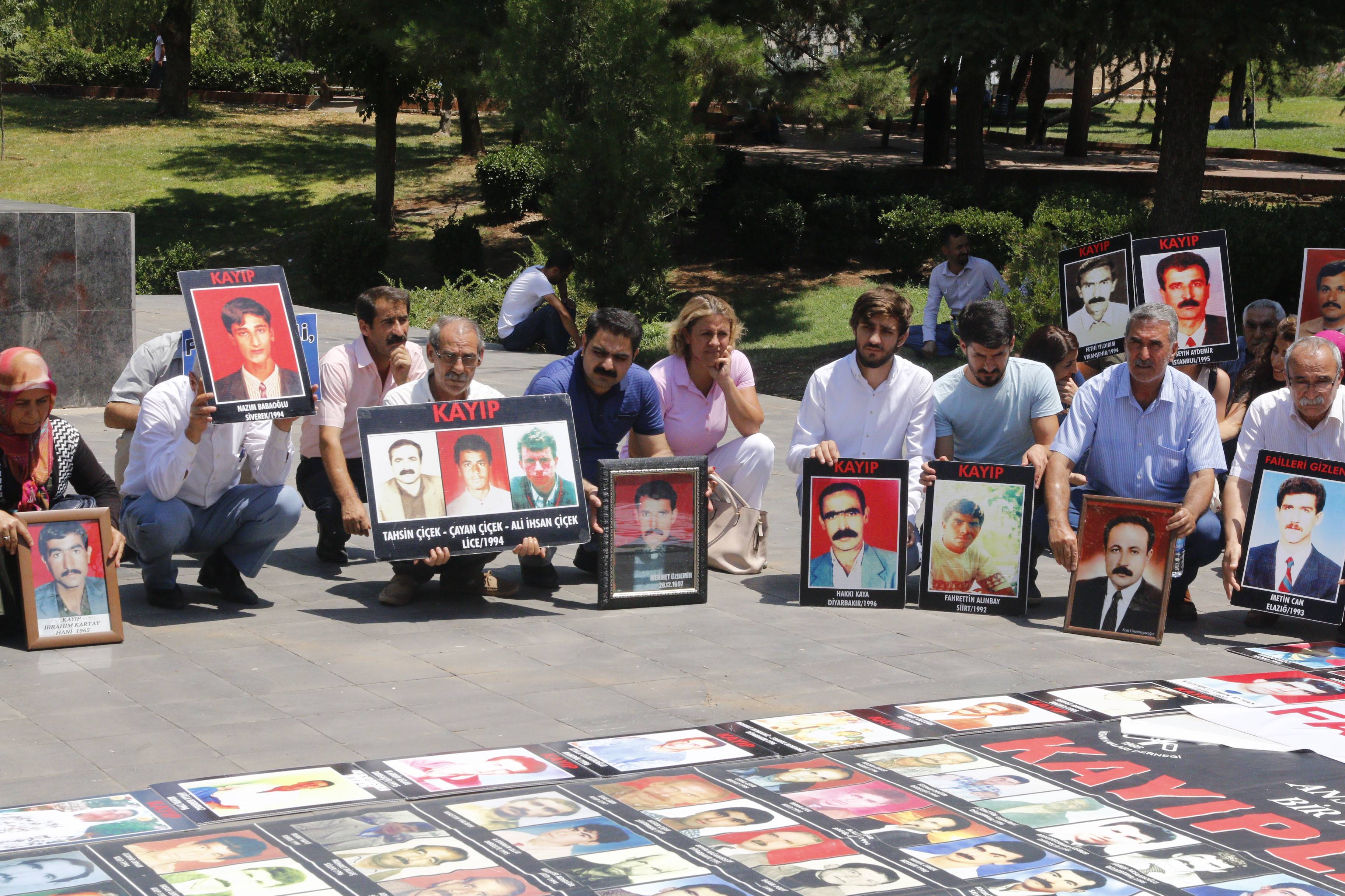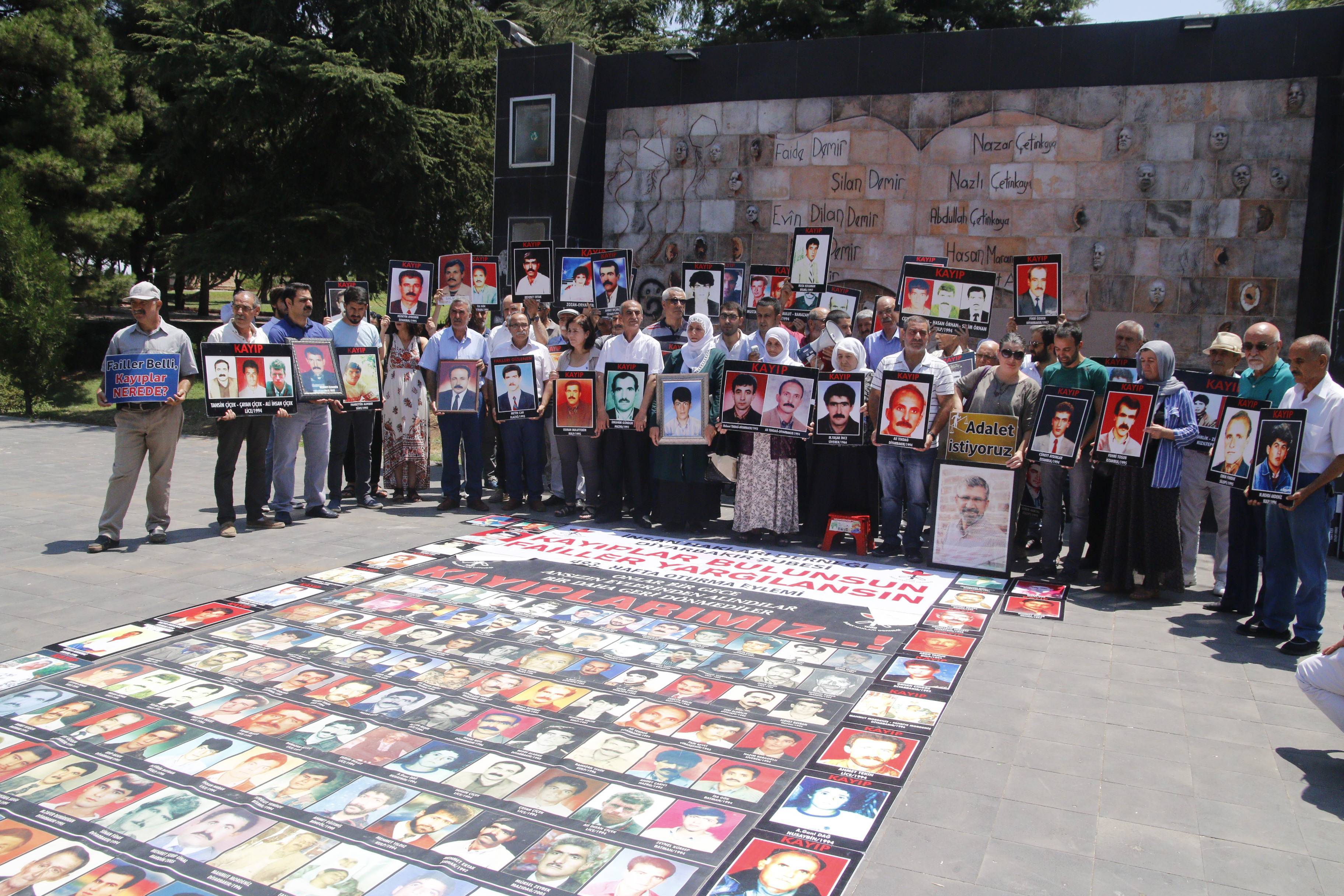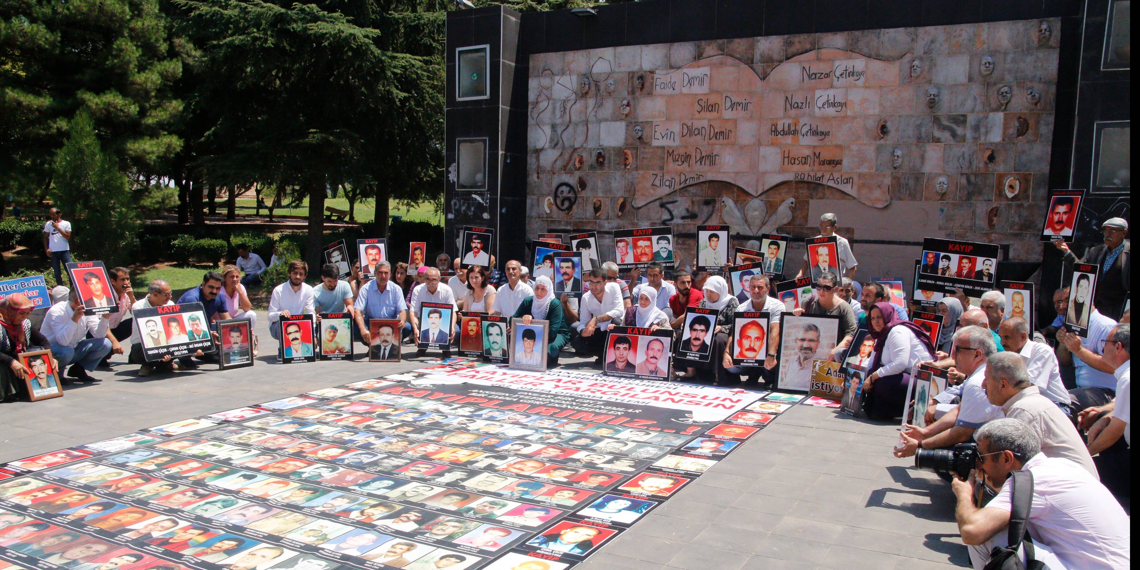 İnsan Hakları Derneği (İHD) Diyarbakır Şubesi ve kayıp yakınları, “Kayıplar bulunsun, failler yargılansın” şiarıyla her hafta düzenledikleri oturma eyleminin 493’üncüsü, Koşuyolu Parkı Yaşam Hakkı Anıtı önünde gerçekleştirildi. OHAL ve Diyarbakır Valiliği’nin yasaklamaları nedeniyle oturma eylemleri 100 haftadır İHD Diyarbakır Şube binasında gerçekleşiyordu. OHAL’in sona ermesiyle birlikte bu hafta yeniden Koşuyolu Parkı Yaşam Hakkı Anıtı önünde gerçekleşen eyleme, İHD Diyarbakır Şube yönetici ve üyeleri, Diyarbakır Tabip Odası, TİHV Diyarbakır Temsilciliği, HDP Diyarbakır İl Örgütü, 78’liler Derneği, Barış Anneleri Meclisi, kayıp yakınları ve insan hakları aktivistleri katıldı. Eylemde, 1992 yılında İstanbul’da gözaltında kaybedilen ve bugüne kadar kendisinden haber alınamayan Hasan Gülünay’ın akıbeti soruldu.
