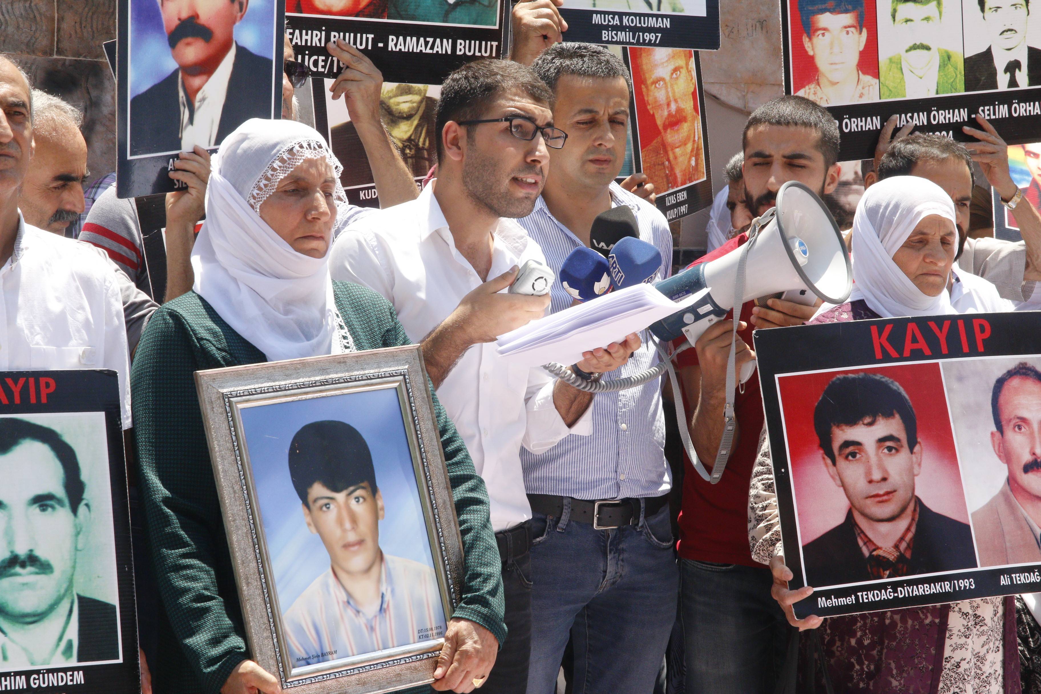 Eylemde konuşan İHD Diyarbakır Şubesi Kayıplar Komisyonu Üyesi Adnan Örhan, OHAL yasağı nedeniyle bu meydanda gerçekleştiremedikleri eylemlerine hiç ara vermeden ve tam 100 hafta boyunca İHD Diyarbakır Şube binasında devam ettiklerini belirtti. Kayıp yakınlarının adalet talebiyle bir araya geldiklerini söyleyen Örhan, ‘Biz kayıp yakınları ve insan hakları savunucuları olarak, yakınlarımızın akıbetini, yakınlarımızın başına getirilen felaketleri sorduk. 90'lı yıllarda yakınlarımız katledilerek faili meçhullere götürülerek bir şekilde başlarına felaket geldi. Bu felaketlerden sonra yıllar geçmesine rağmen, bizler bu hak hukuk mücadelemizi devam ettiriyoruz, devam etmeye da kararlıyız. " diye konuştu.
