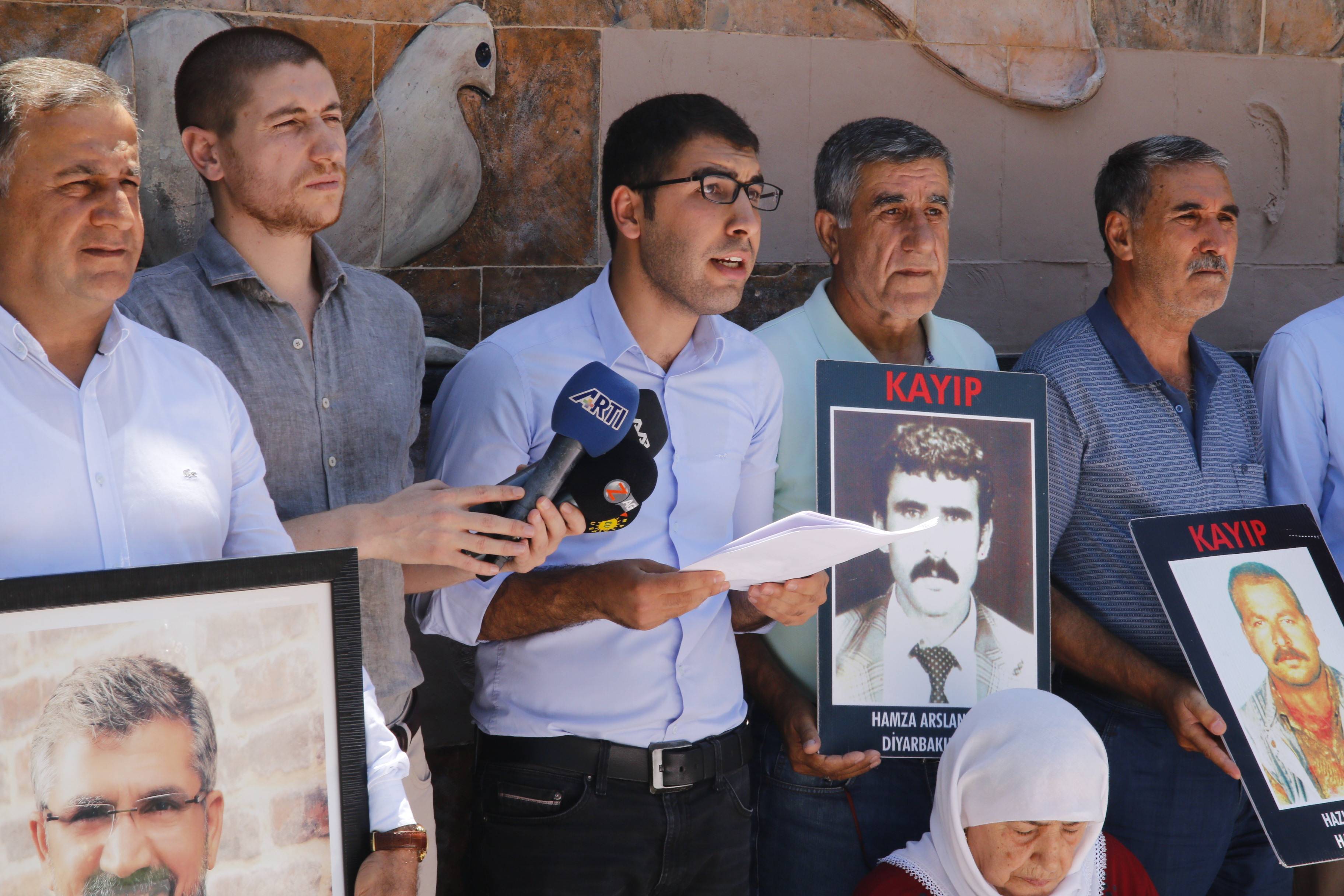 Eylemde konuşan İHD Diyarbakır Şube Başkanı Abdullah Zeytun, 90’lı yıllarda faili meçhul siyasi cinayetlerin ve zorla kaybetmelerin yaygın ve sistematik bir şekilde gerçekleştiğini belirtti. İnsanlığa karşı işlenen bu suçların faillerinin yargı önüne çıkarılması için mücadele etmeye devam ettiklerini belirten Zeytun “Geçmişte olduğu gibi bu günde siyasi iradenin etkisiyle yargı, herhangi bir geçmişle yüzleşme, faillerin bulunması ve cezalandırılması yönünde bir işlem yapmamaktadır.” diye konuştu.