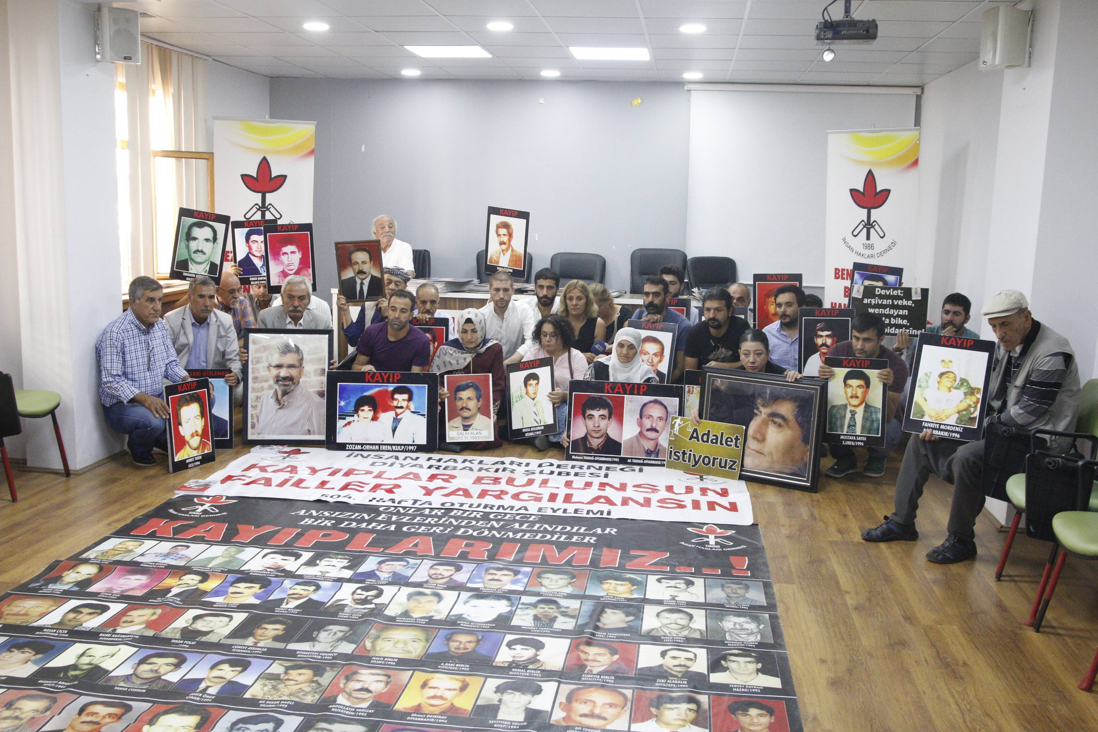 İnsan Hakları Derneği (İHD) Diyarbakır Şubesi ve kayıp yakınları tarafından “Kayıplar bulunsun, failler yargılansın” sloganıyla her hafta düzenlenen oturma eylemlerinin 504’üncüsü, Valiliğin kayıp eylemlerini yasaklayan keyfi ve hukuk dışı kararı nedeniyle İHD Diyarbakır Şube binasında gerçekleştirildi. Şube binasında gerçekleşen ve kayıpların fotoğraflarının taşındığı eyleme HDP Diyarbakır Milletvekili Selçuk Mızraklı, İHD Bölge Temsilcisi Abdusselam İnceören, İHD Diyarbakır Şube ve yöneticileri, TMMOB Diyarbakır İl Koordinasyon Kurulu (İKK) üyeleri, SES Diyarbakır Şubesi yönetici ve üyeleri, kayıp yakınları ve insan hakları aktivistleri katıldı. Eylemde, 8 Kasım 1993 tarihinde Diyarbakır’ın Hazro ilçesinde bağlı Çitlibahçe (Helhel) köyünde asker ve korucular tarafından düzenlenen baskında gözaltına alınan ve kendisinden bir daha haber alınamayan Ahmet Çakıcı’nın akıbeti soruldu.