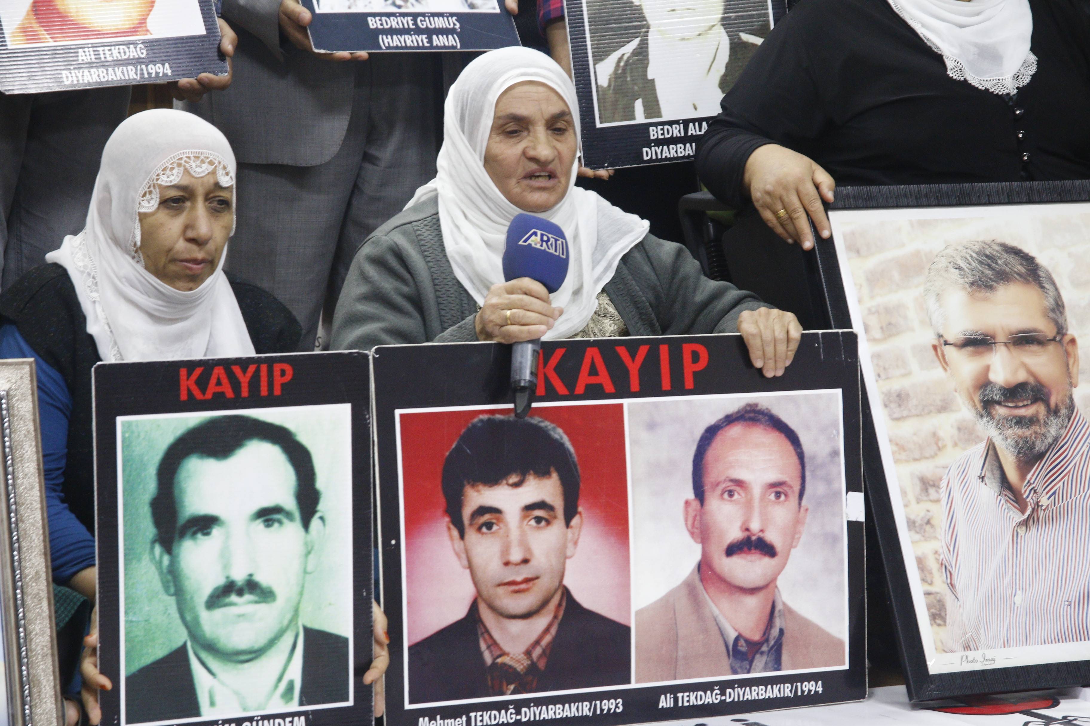 Eylemde bir konuşmada bulunan İHD Diyarbakır Şube Yöneticisi ve Kayıp Komisyonu Üyesi Adnan Örhan, kayıpların akıbetinin ortaya çıkarılması amacıyla vermiş oldukları mücadelenin sonuç alıncaya kadar devam edeceğini söyledi. Kayıpların akıbetinin ortaya çıkarılması için vermiş oldukları mücadelenin aynı zamanda bir demokrasi ve hak mücadelesi olduğunun altını çizerek konuşmasını sürdüren Örhan “Çünkü şunu belirtiyoruz. Biz kayıp yakınları kayıplarımızın başına ne getirildiyse açığa çıkarılmadığı sürece, bu ülkede demokrasiden bahsetmek kesinlikle mümkün değildir. Geçmiş yıllarda yakınlarımızın başına getirilen felaketlerden sonra, nasıl kaybettirildiklerini şahitleriyle ispatlı bir şekilde belgeledik ve savcılıklara suç duyurularında bulunduk. Maalesef geçmişten günümüze binlerce kayıp başvurusuna rağmen hiçbir fail yargılanmadı, ya da yargılandıysa bile hiçbir fail cezalandırılmadı. Yargı önüne çıkarılan failler de, beraat ettirildi. Onları beraat eden yargı mensuplarının şunu sormak istiyoruz. Sizin vicdanınız gerçekten rahat mı?” diye konuştu.