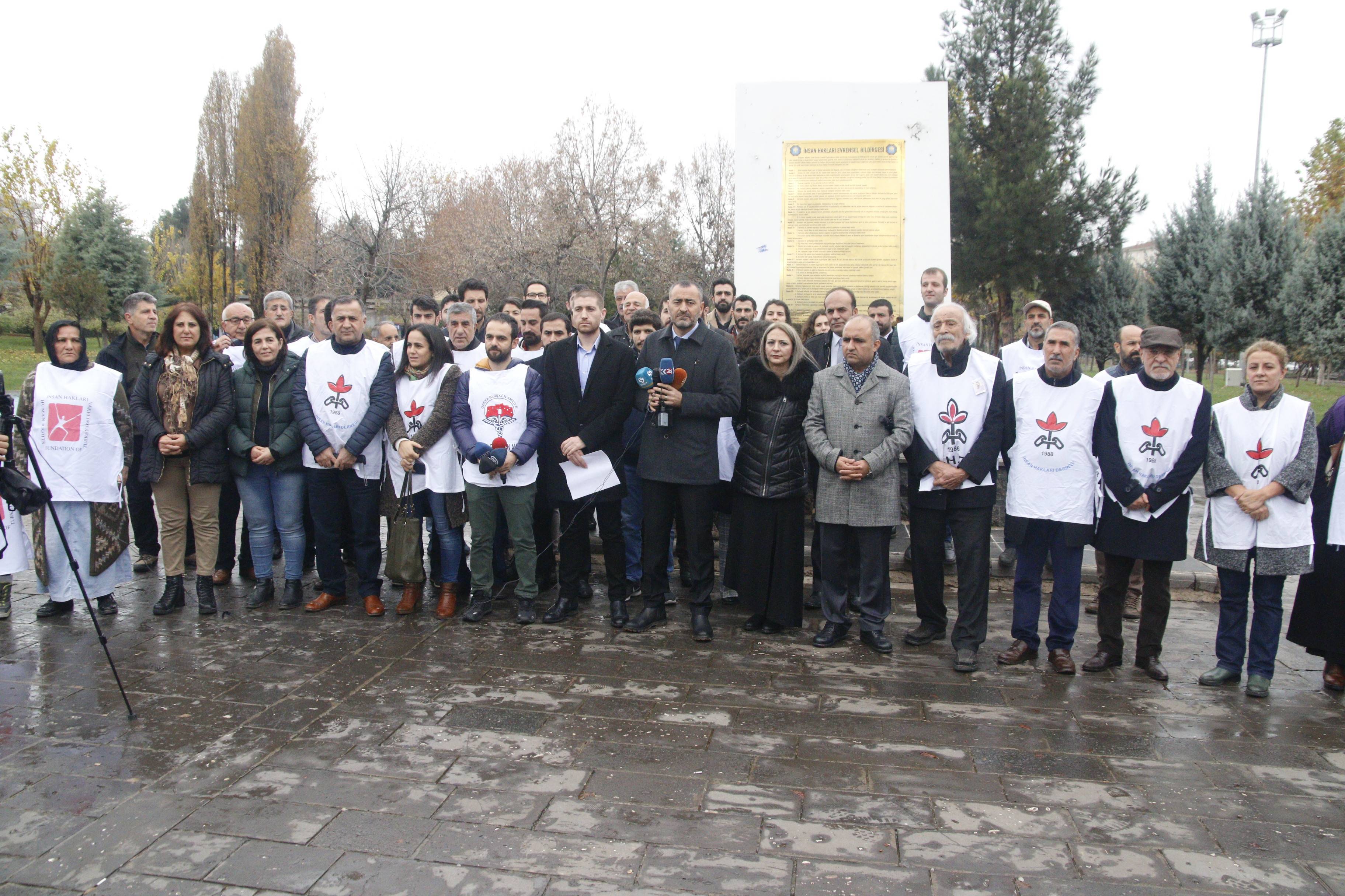 İnsan Hakları Derneği (İHD) Diyarbakır Şubesi, Diyarbakır Barosu, Türkiye İnsan Hakları Vakfı (TİHV) Diyarbakır Temsilciliği, Hak İnisiyatifi Derneği Diyarbakır Temsilciliği ve Diyarbakır Tabip Odası (DTO) tarafından organize edilen etkinliklerin startı, Koşuyolu Parkı'nda bulunan İnsan Hakları Anıtı önünde düzenlenen ortak bir basın açıklamasıyla verildi.