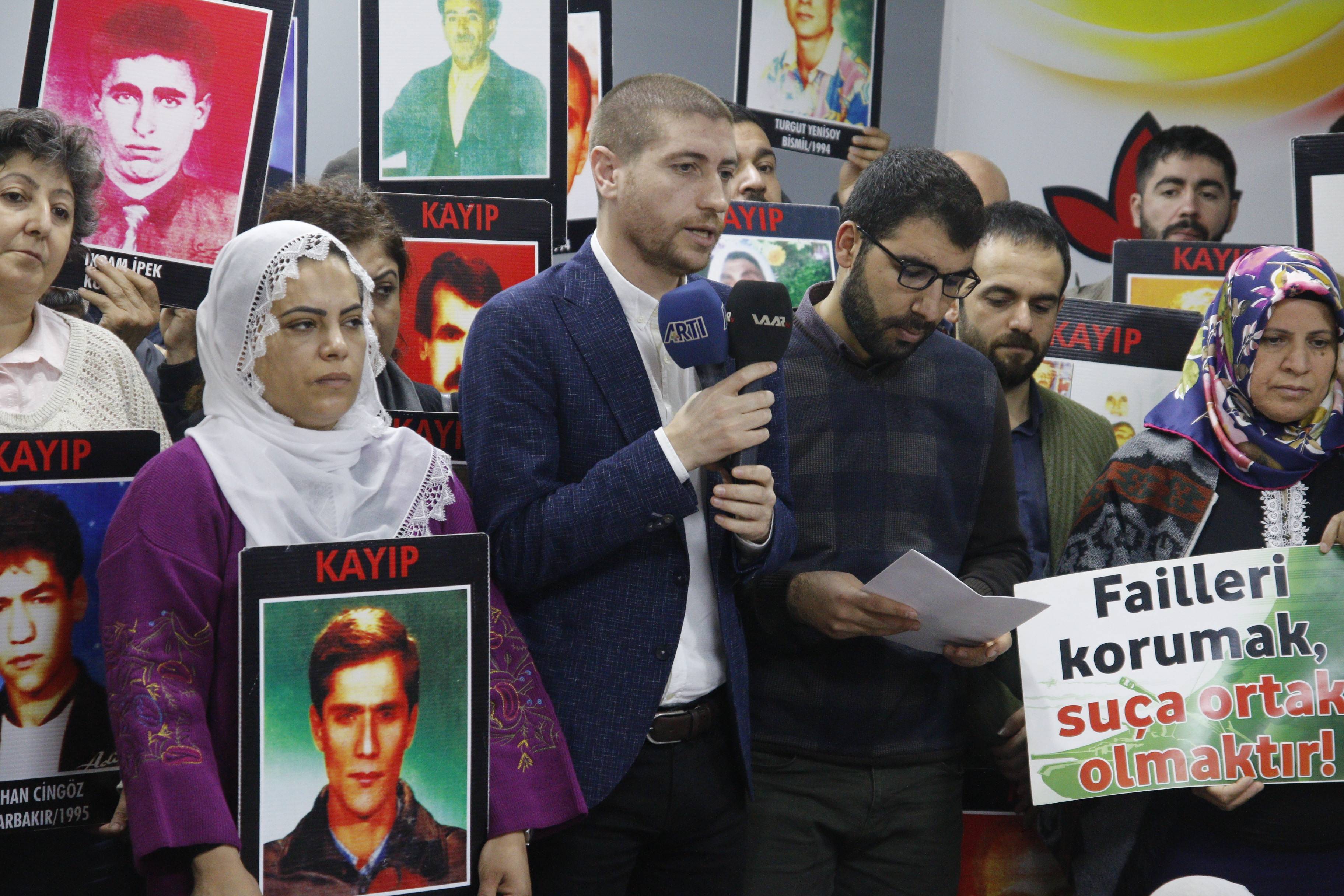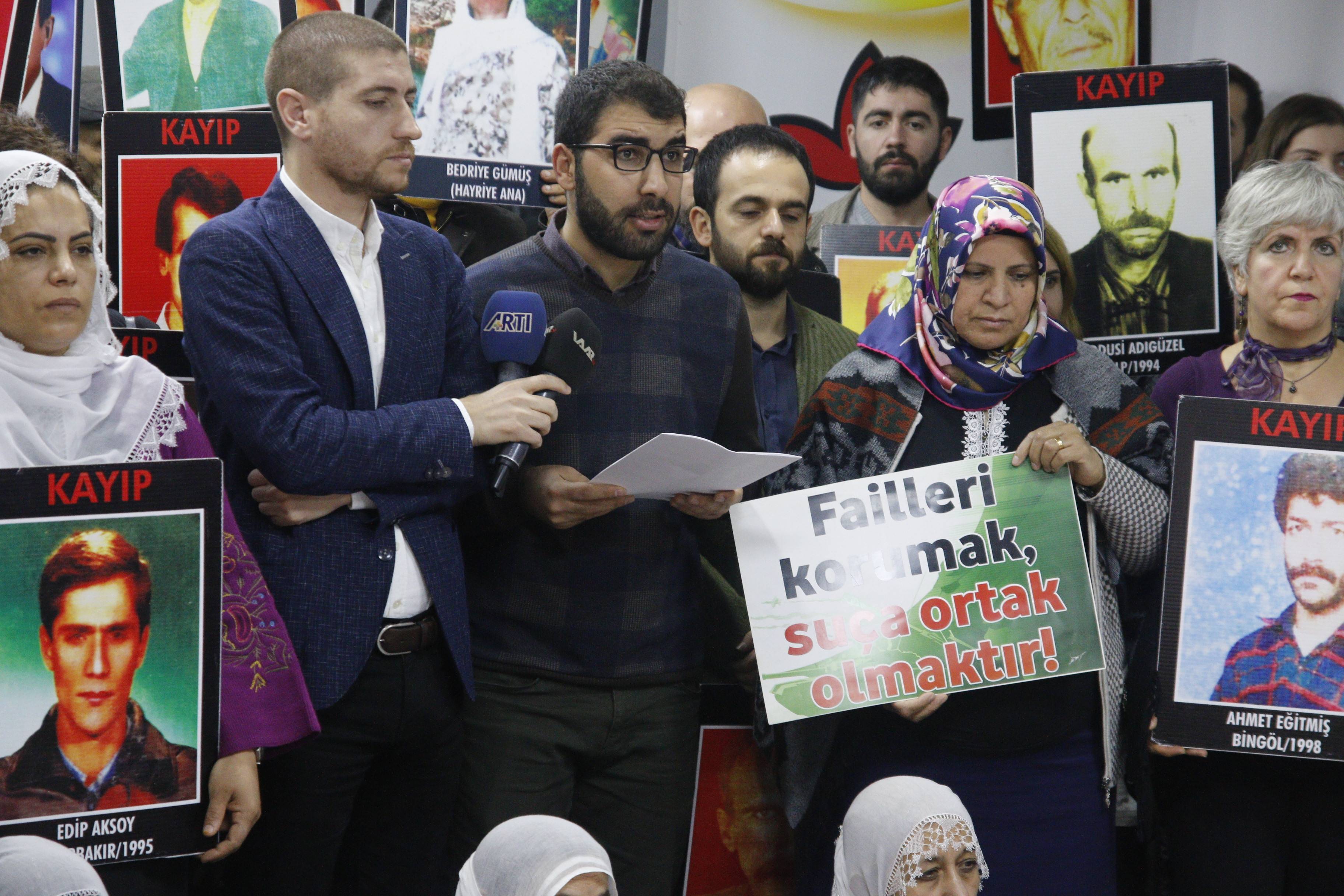 Türkiye Cumhuriyetinin kurulmasından evvel başlayan ve 1937- 1938 Dersim Katliamı ile süregiden zorla kaybettirme uygulamaları 90’lı yıllarda bölge coğrafyasında başlayan savaş ve çatışma ortamı ile tekrar devreye sokulduğunu söyleyen Yalçin, “Herkesçe bilindiği üzere ne yazık ki 90’lı yıllarda devlet ve devlet adına hareket eden bir takım paramiliter güçlerin fiilleriyle sistemli ve planlı bir şekilde sayısız masum insan gözaltında zorla kaybettirilip asit kuyularına atıldı, faili meçhul cinayetlere kurban gitti ve toplu mezarlara gömülüp ortadan kaybettirildi. Yaşanan bu acı ve vahim tablo karşısında kayıp yakınları, devletin tüm kurumlarına başvurular yaparak karakol kapılarında, adliye sarayları önünde yıllarca yakınlarından gelecek bir haber için beklediler.” diye belirtti.