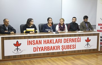 İnsan Hakları Derneği (İHD) Merkezi Hapishaneler Komisyonu ve İHD Şubeleri tarafından, 19 Aralık 2000’de düzenlenen Hayata Dönüş Operasyonunun yıldönümü nedeniyle ve “Cezaevlerinde İnsan Hakları İçin Mücadele ve Dayanışma Günü” vesilesiyle eş zamanlı basın açıklamaları düzenlendi. İHD Diyarbakır Şube binasında düzenlenen basın toplantısına İHD Şube Sekreteri Yüksel Aslan Acer, Şube Cezaevi Komisyonu Üyeleri Yusuf Erdoğan, Hediye Saltan ve Gurbet Yavuz ile Şube yöneticileri Ercan Yılmaz ve Abdullah Özbey katıldı.