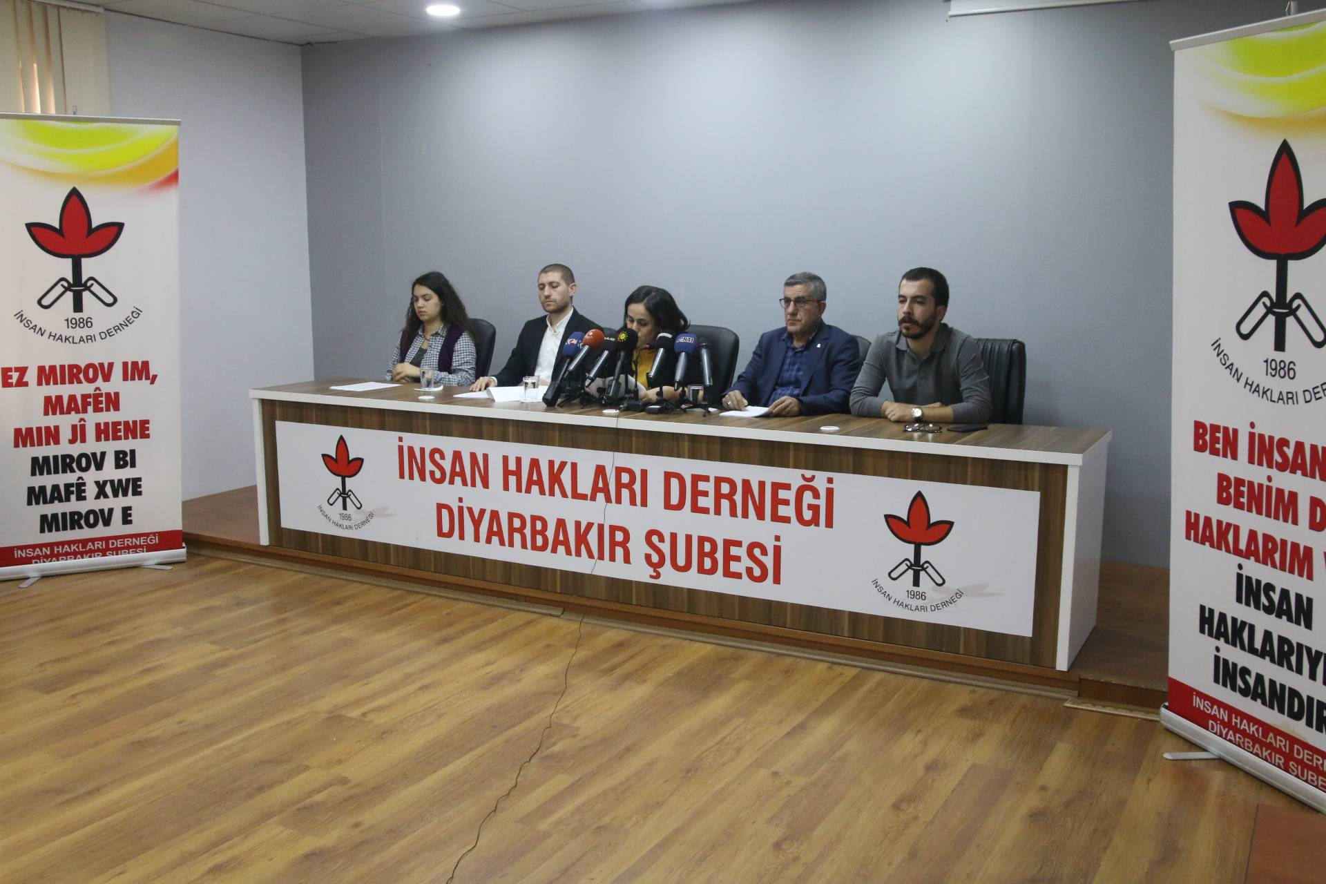 DİYARBAKIR - İHD Diyarbakır Şubesi tarafından hazırlanan ve bir basın toplantısıyla açıklanan “2018 Yılı Doğu ve Güneydoğu Anadolu Bölgesi İnsan Hakları İhlalleri Raporu”da yer alan verilere göre, İşkence ve kötü muamele, toplanma ve gösteri hakkına yönelik yasaklar ve müdahaleler, düşünce ve ifade özgürlüğü, basın özgürlüğü, kadına ve çocuklara yönelik şiddet, ekonomik ve sosyal haklardaki kayıplar gibi pek çok değişik ve kategorik konularda ihlaller meydana geldi.